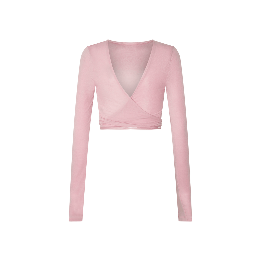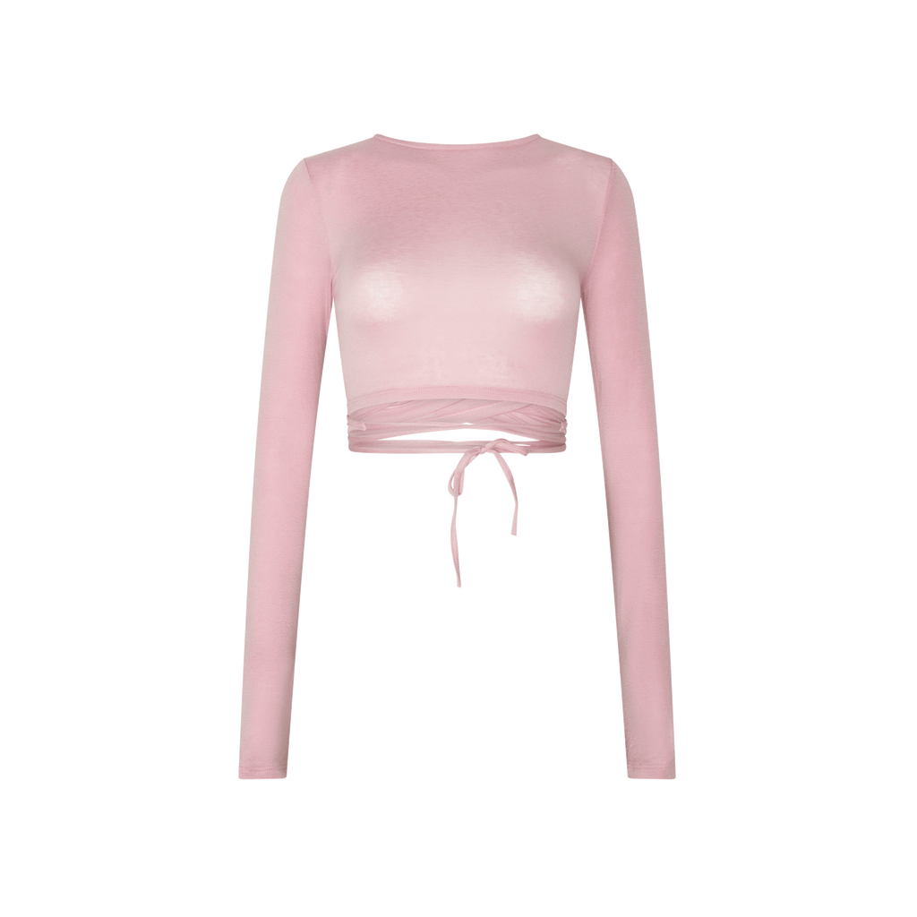 Dune Top in Pink features long sleeves and wrap tie closure.