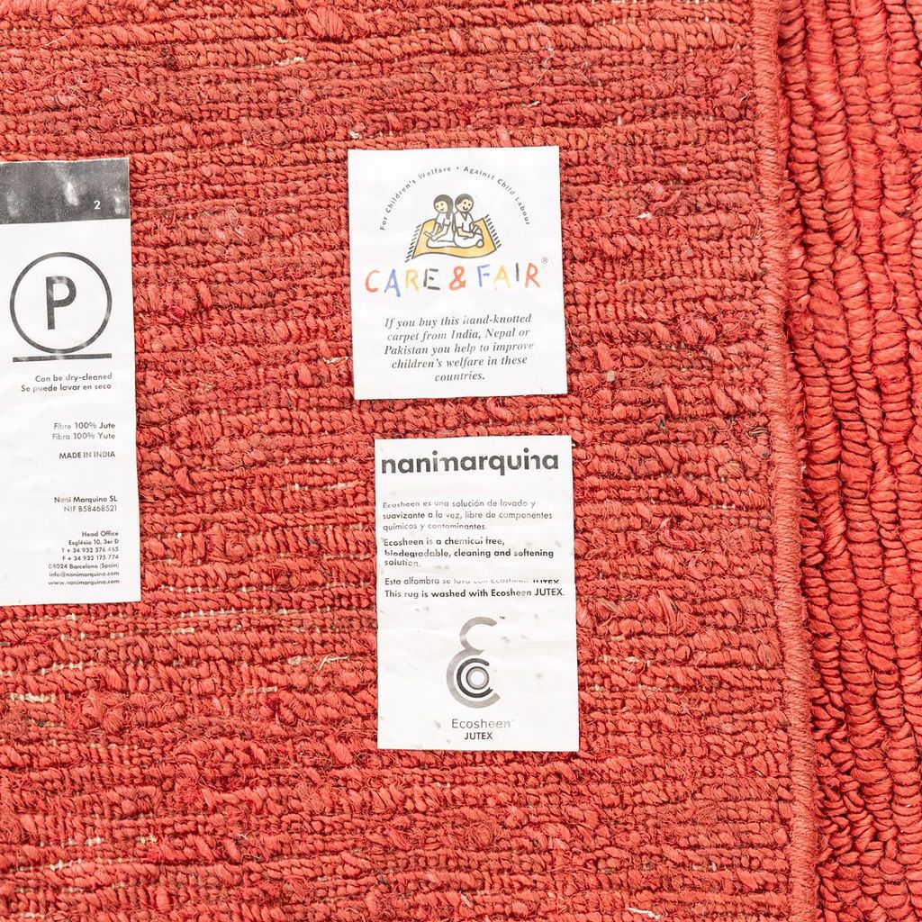This is a Tatami Rug hand loomed with New Zealand wool and jute in a shade of terracotta red. The rug was designed by Nani Marquina and Ariadna Miquel. It was produced by Nanimarquina in India. The rug dates to circa 2022 and is guaranteed as authentic. Condition is very good to excellent. See photos. This came directly from Nanimarquina and was previously a showroom display model.