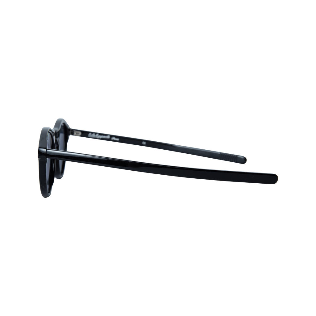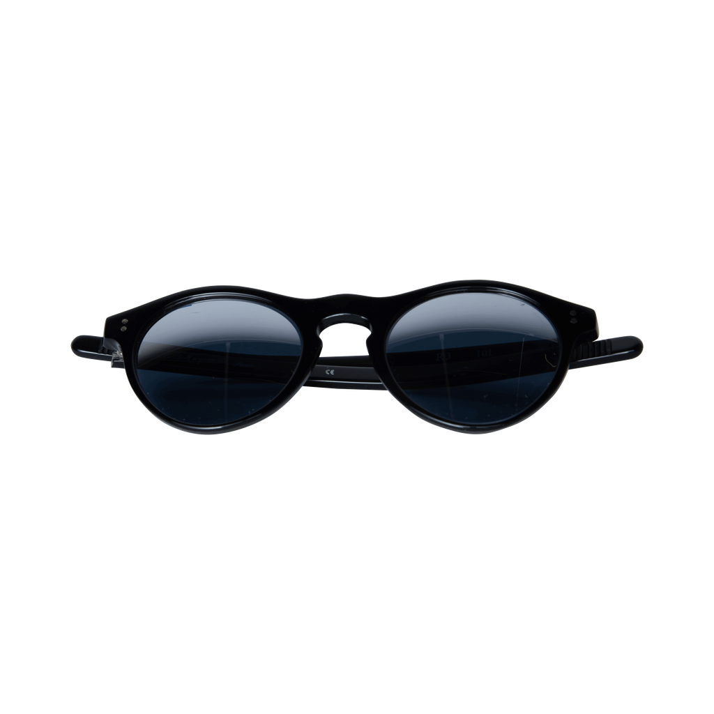 E.B. Meyrowitz Black Sunglasses with Silver Lenses features rounded shape and arched topline.