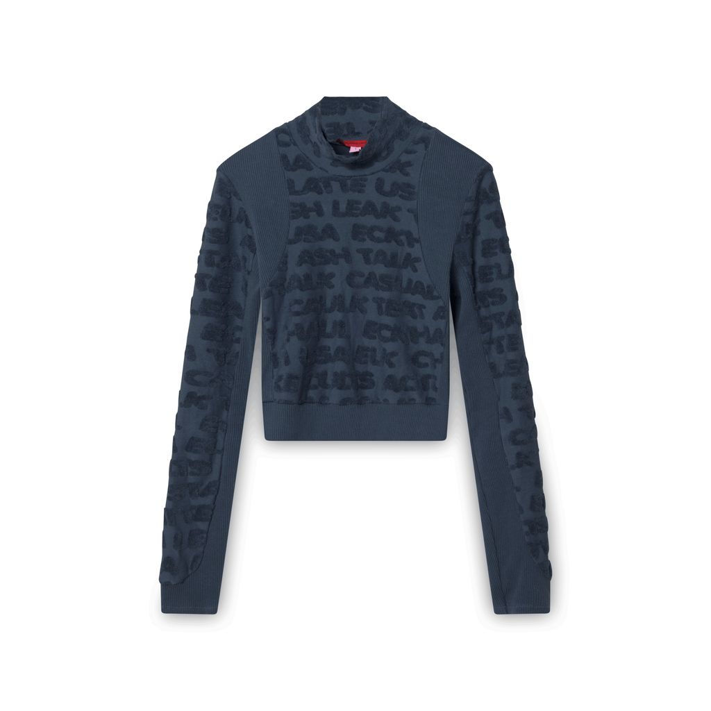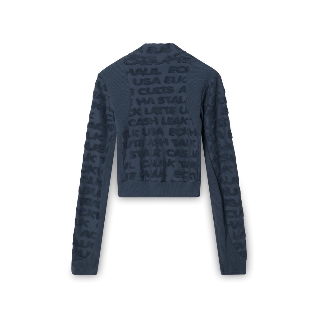 Eckhaus Latta Anagram Cropped Turtleneck features logo anagram pattern in terry jacquard and ribbed details.