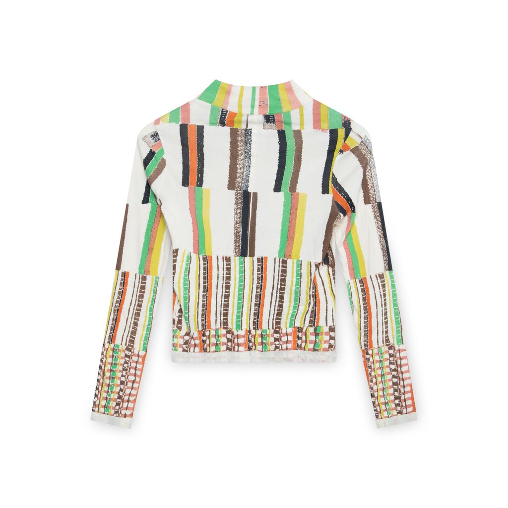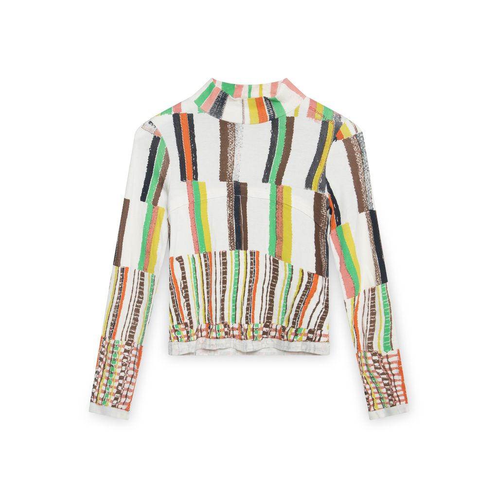Eckhaus Latta Multicolored Striped Long Sleeve features panelled silhouette, striped design, and mock neck.