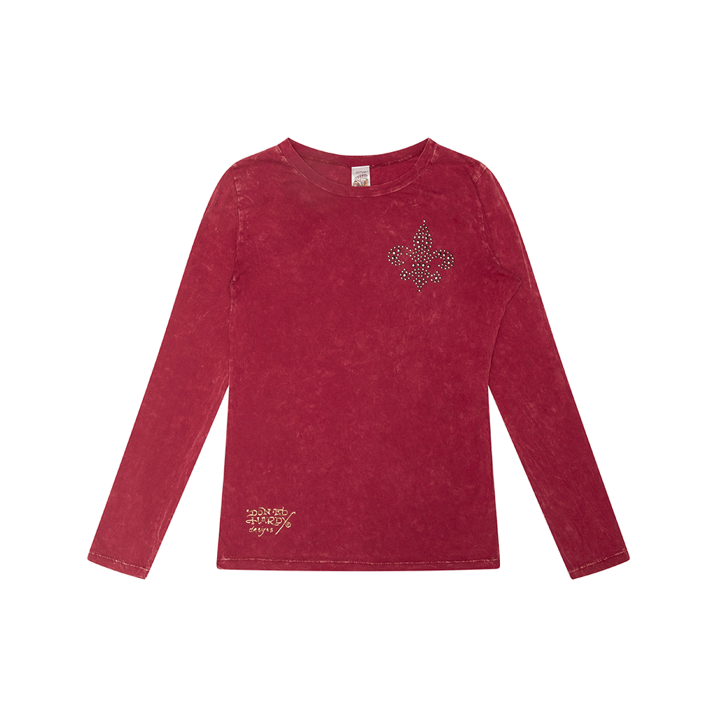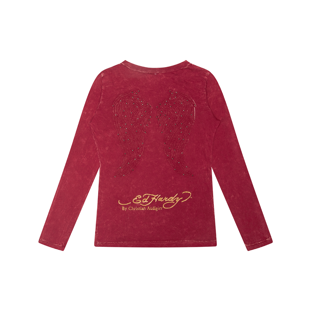 Ed Hardy Red Long Sleeve Wing Top feature crew neck collar, embellished design on the front and back.