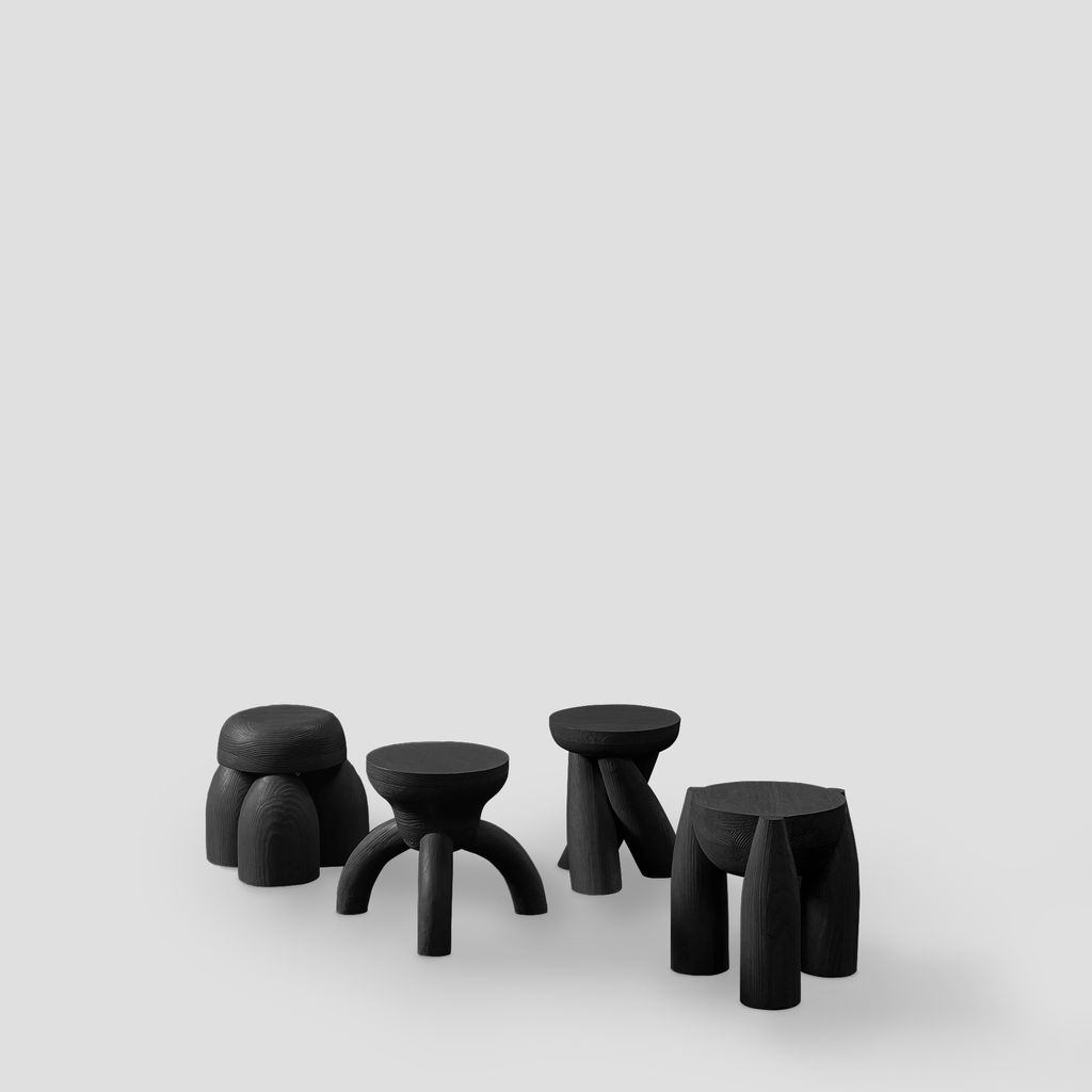 The ELEMENTOS Earth Stool by Daniel Couttolenc embodies calm strength and elemental grounding. Sculpted from Pine Wood with a deep Black Finish, its broad stance and geometric depth reflect stability and endurance. Balanced by sacred proportion, it invites reflection in both form and presence. Tailored options available on request.