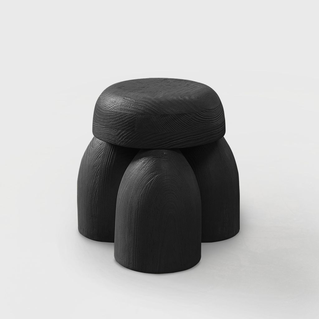 ELEMENTOS by Daniel Couttolenc is a suite of four stools inspired by the spiritual essence of the classical elements. Guided by the golden ratio, Earth embodies stability, Water expresses flow, Fire radiates upward energy, and Air achieves serene levity. Carved from Pine Wood with a rich Black Finish, the collection translates geometry into vibration, uniting presence and harmony in space. Custom options upon request.