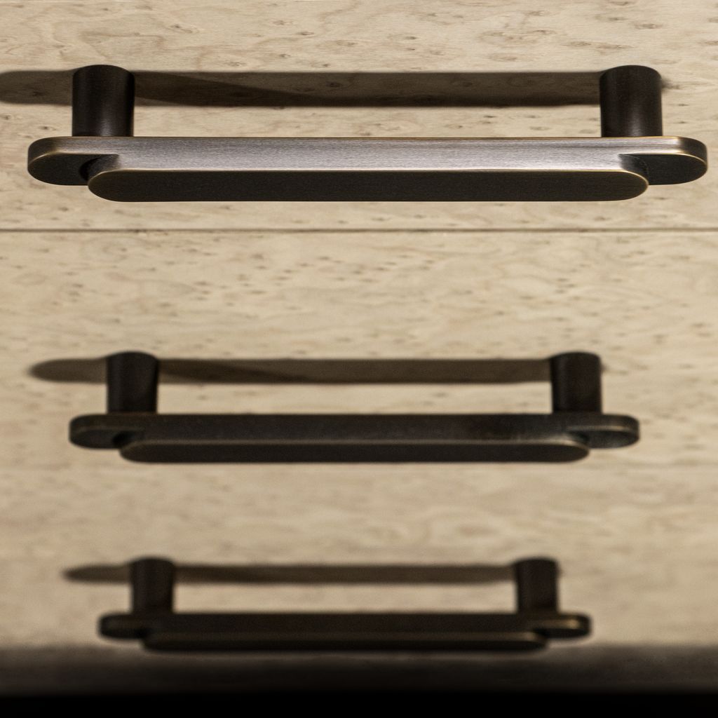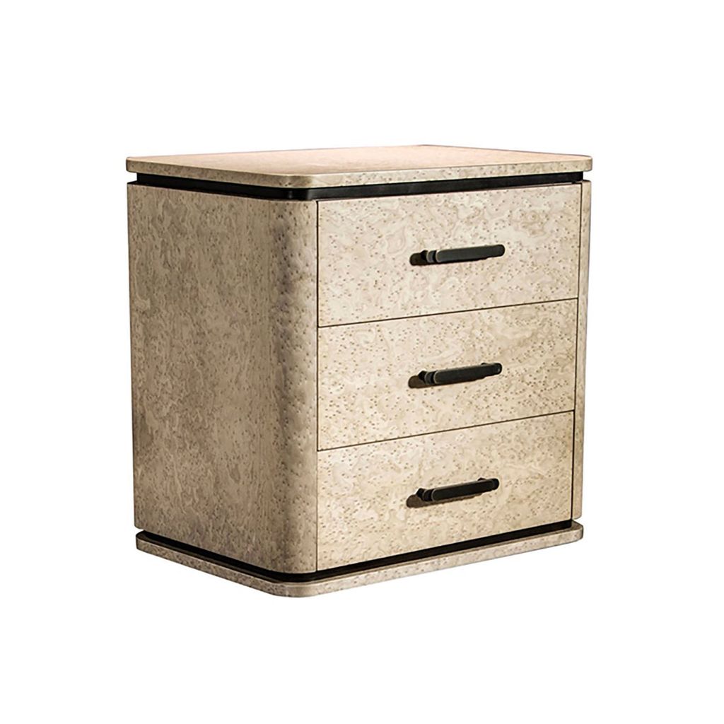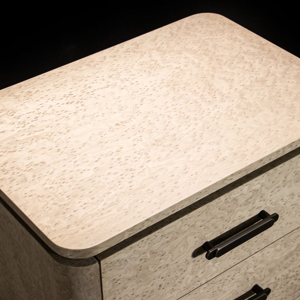 Modern Bedside Table in Gray Birdseye Maple & Bronze by Costantini, Elena.