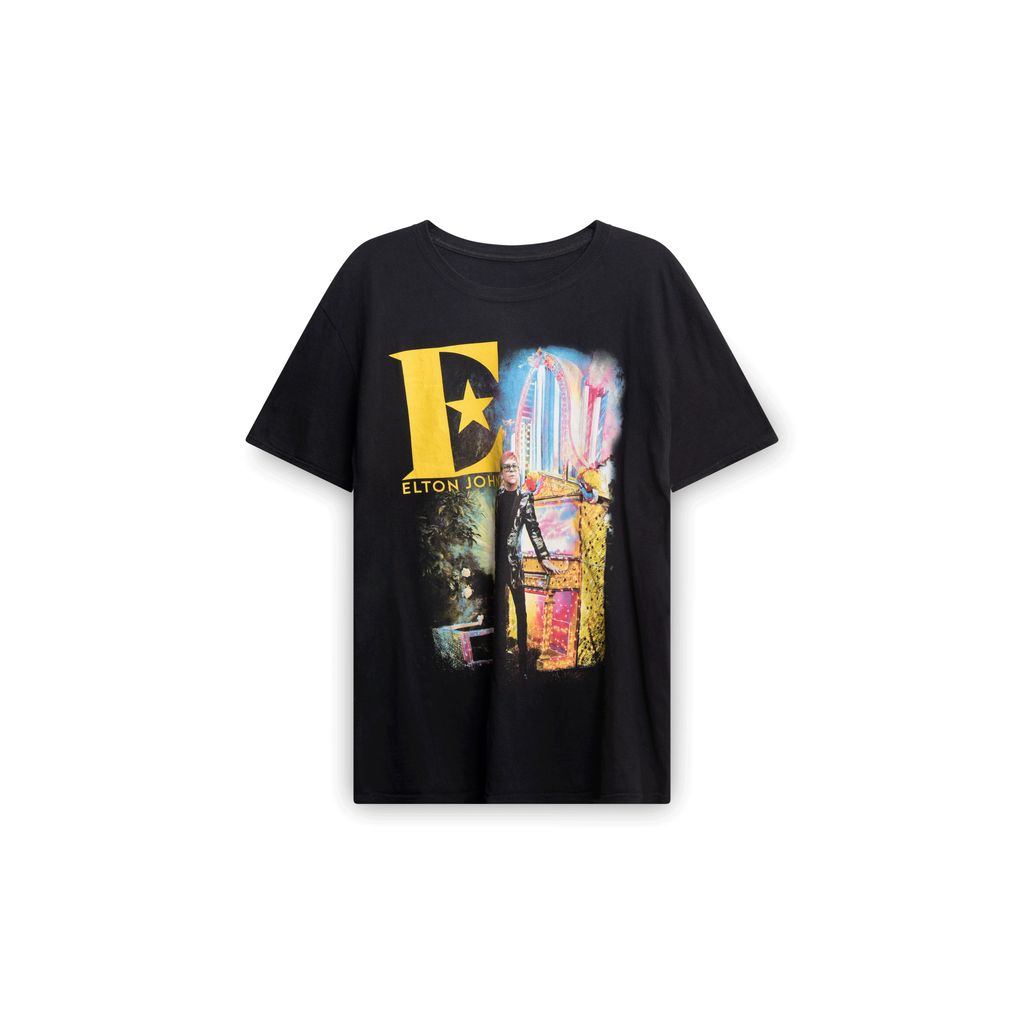 Elton John World Tour Merch features crew neckline and screen printed graphics