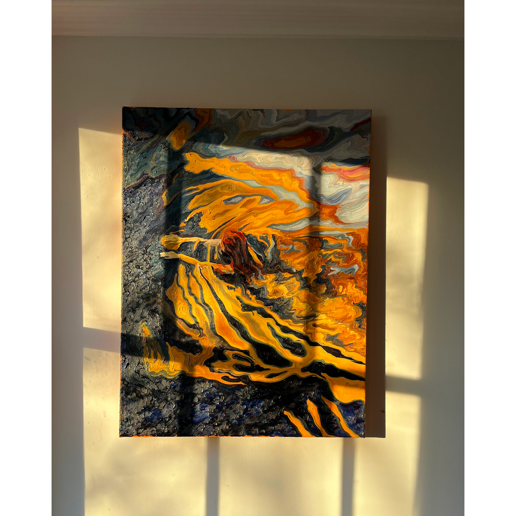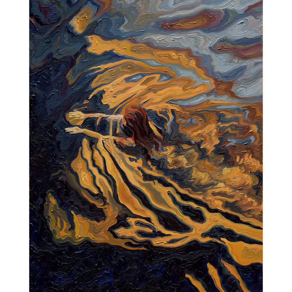 Golden ripples surround her like a warm embrace this piece was a reflection of the energy I feel towards myself now and serves as a quiet reminder of your own energy and return to yourself.