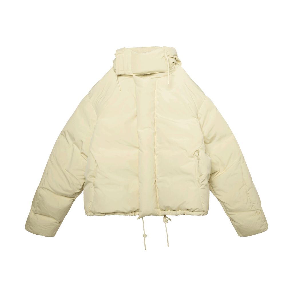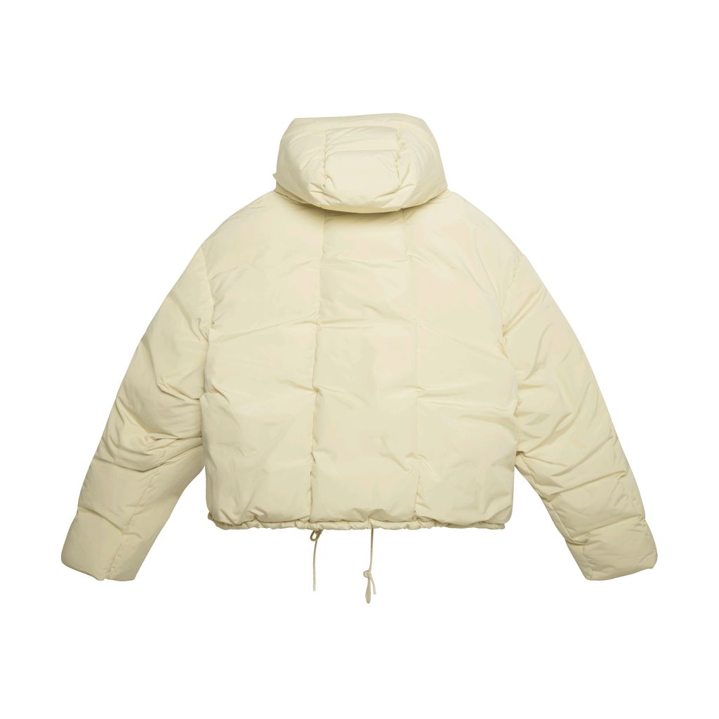 Entire Studios down soa puffer in blonde features a fully-lined down-filled canvas, concealed zip closure, velcro placket, welt pockets at waist, and tonal hardware.