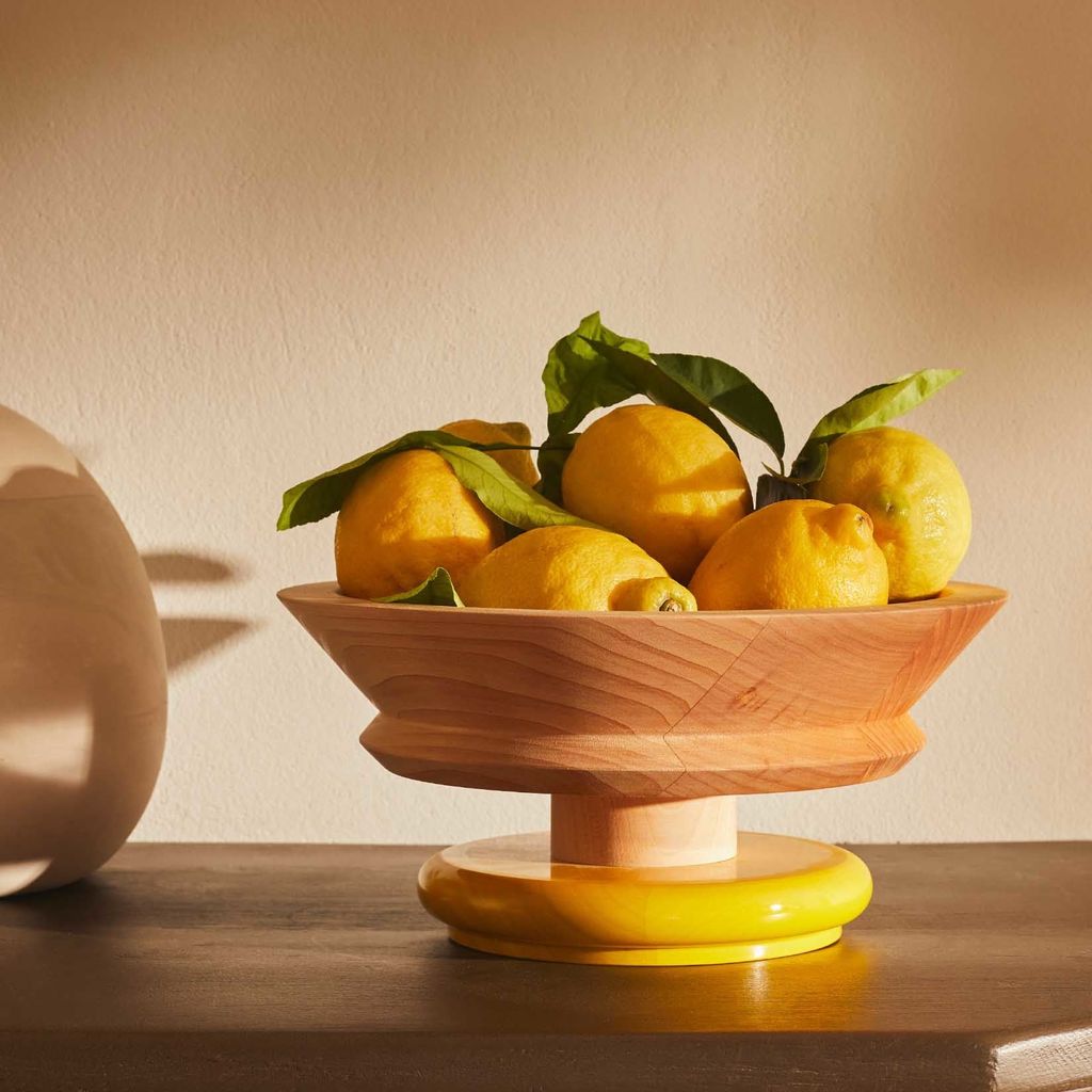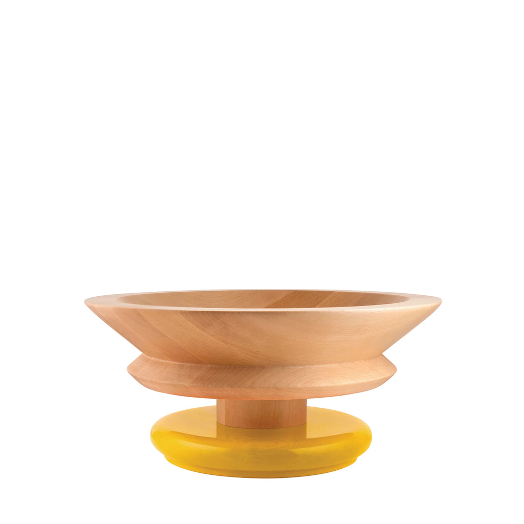 With its incisive and powerful design, this centerpiece produced in lime wood is one of the most significant pieces created by Ettore Sottsass for Alessi. The large bowl can hold fruit, chocolates and sweets, dried flowers and other decorative items, according to personal taste needs. It is a small work of art capable of standing out in any domestic space.