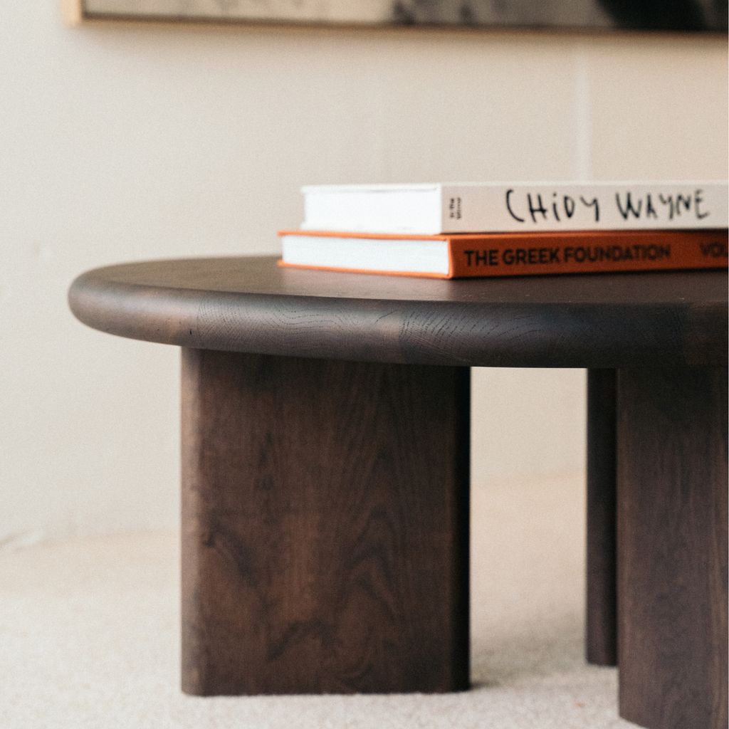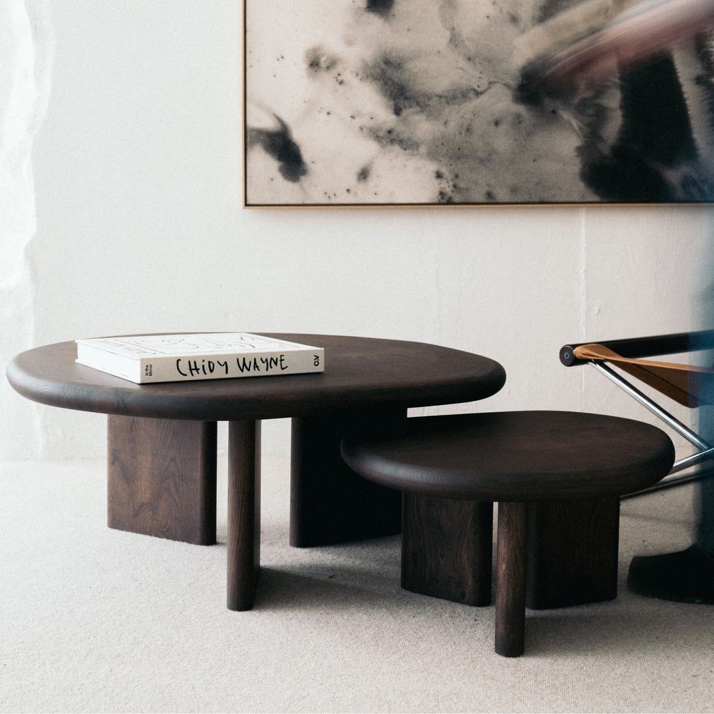 Discover our elegant solid oak coffee table, a robust and refined centerpiece for any living space. Environmentally friendly, this table is crafted from solid oak sourced from responsibly managed forests (FSC certified). It features an espresso-stained varnish finish that highlights the richness and depth of the wood, while offering exceptional resistance and durability. One size: ⌀80 and ⌀48. More details in the dimensions section.