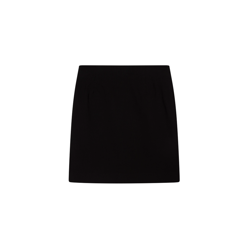 Esprit Black Mini Skirt features high waist, hidden side zipper, and small leg slit.