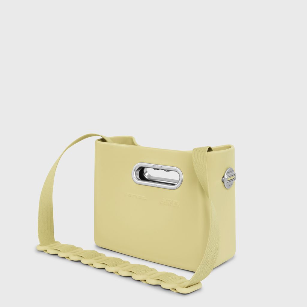 The EVA East West Clutch is a high-density, lightweight tote, made of injection-molded EVA. It has a minimalist yet elevated aesthetic, featuring an adjustable engineered knit strap for easy carry, and hardware made from Aircraft Grade Aluminum. The East West Clutch is an evolution of our East West Tote System, featuring the new Hook Grip, designed to enable simple, secure closure.