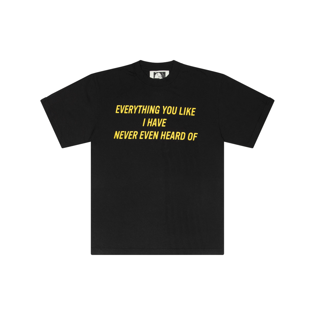 Everything You Like Tee - Black features graphic on front.