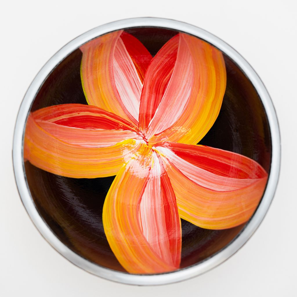 This particular piece was hand-painted by Erin Garcia himself and features his signature flower design.
