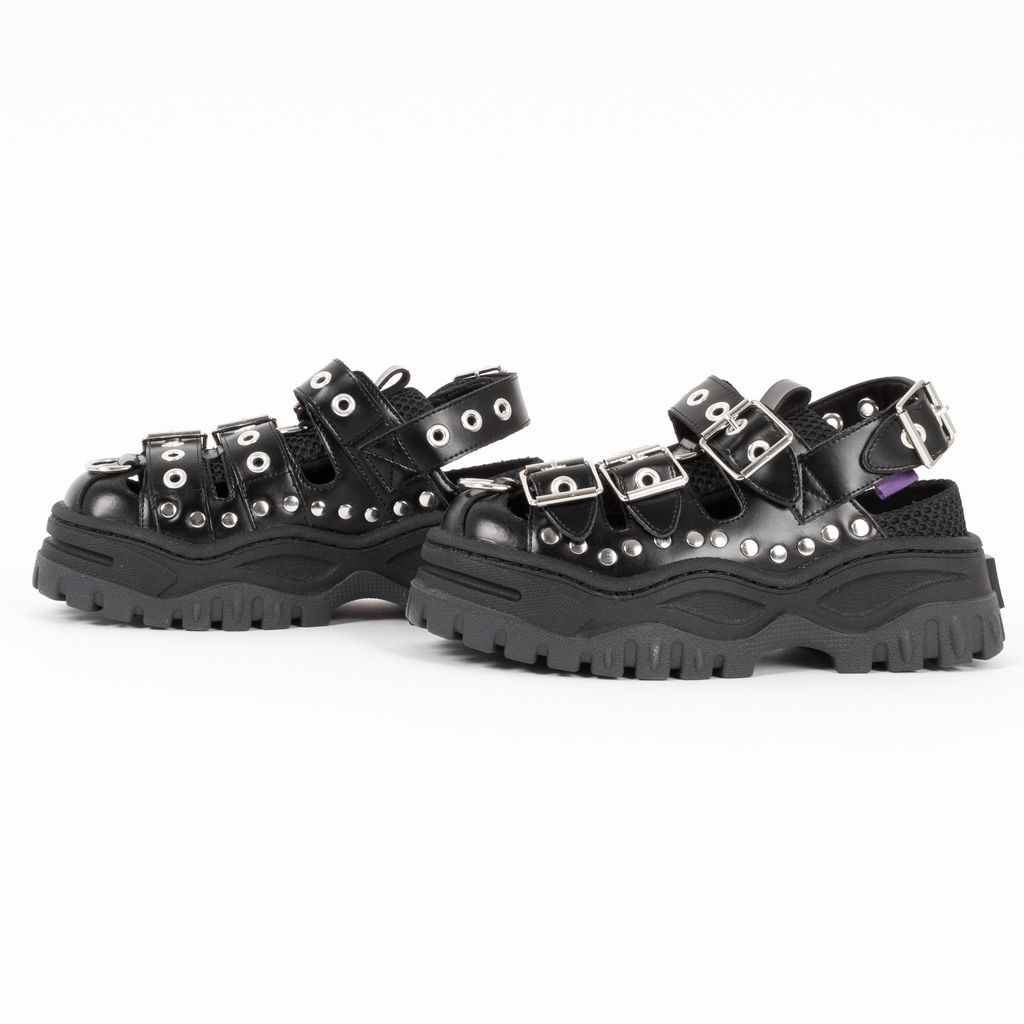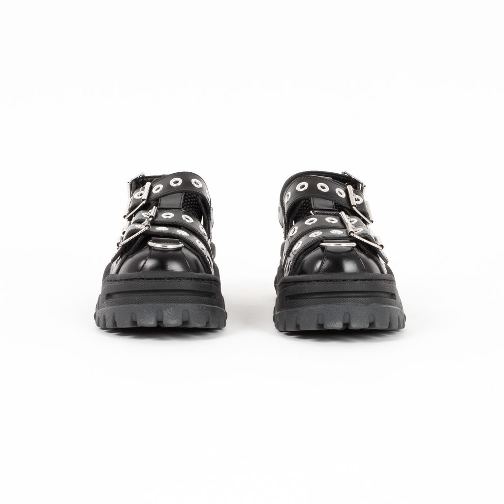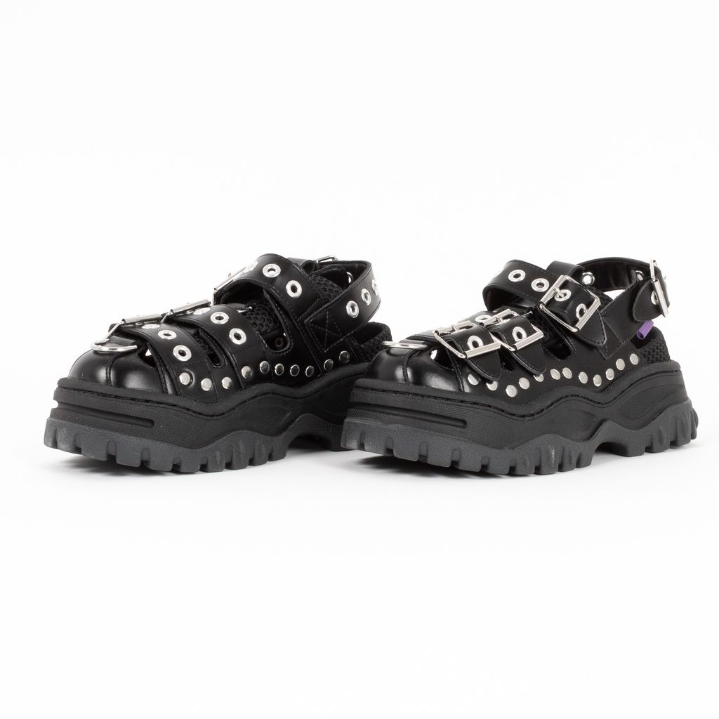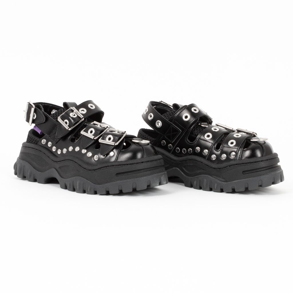 Nineties underground fashion sees the spotlight in the form of these insane sandal sneaker hybrid shoes from Eytys. Features thick, platform Buffalo-esque sole, adjustable leather straps with silver hardware, padded mesh underbody with pull tab at tongue, and leather insole.