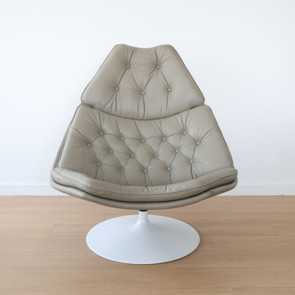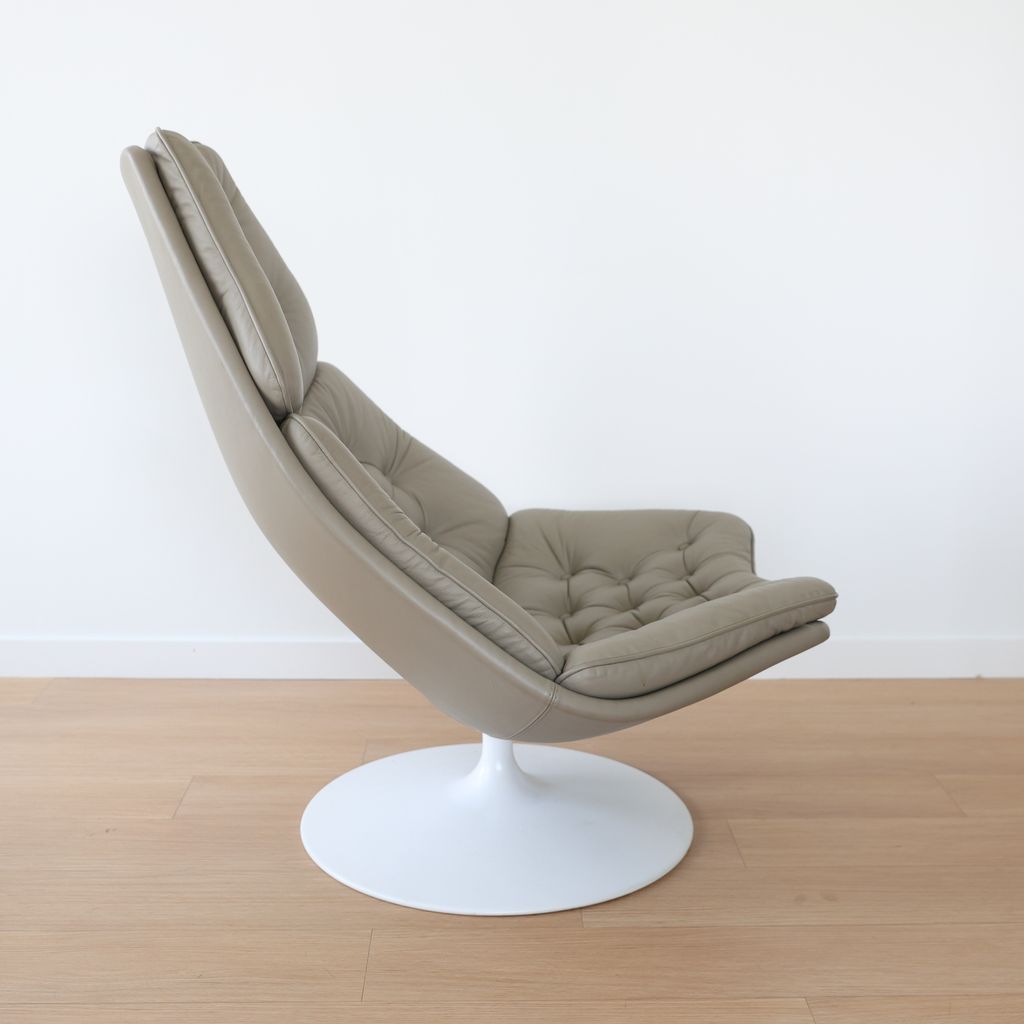 Perfect condition original grey leather F588 swivel high back lounge chair by Geoffrey D. Harcourt for Artifort. Extreme comfort and space age flair from the Netherlands, 1960s.