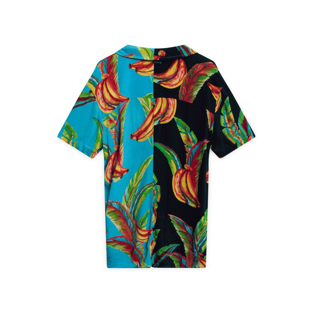 Farm Rio Bananas Shirt features Hawaiian-style bananas pattern with collar and brown buttons.