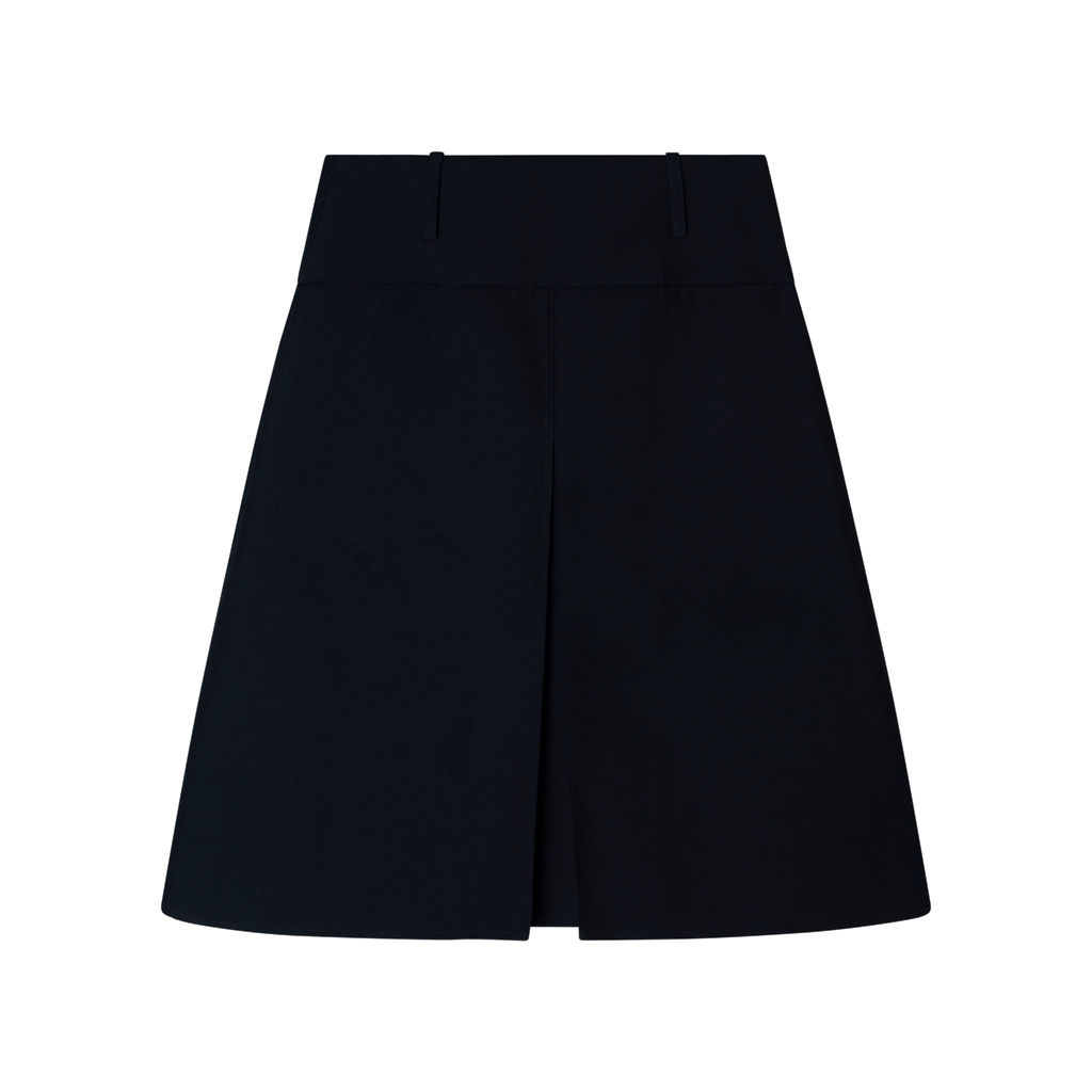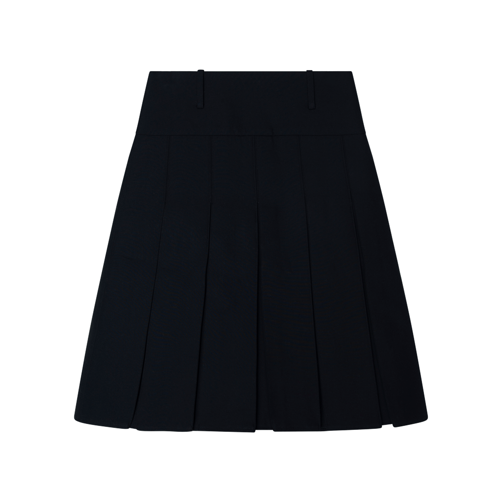 Fax Copy Express Pleated Skirt features midi length, belt loops, hidden side zipper, and pleats.