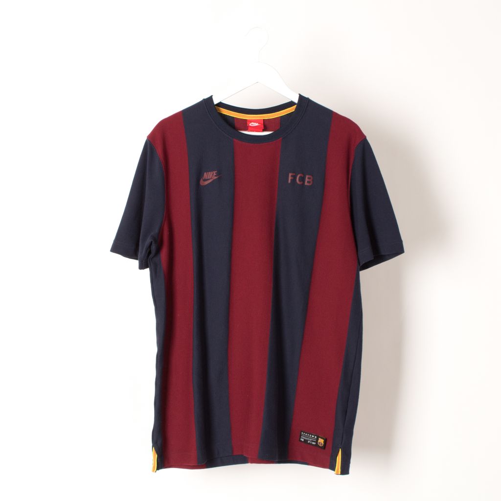 Like new, 100% cotton FC Barcelona jersey styled top from Nike. Heavyweight, striped, screen printed branding across chest.