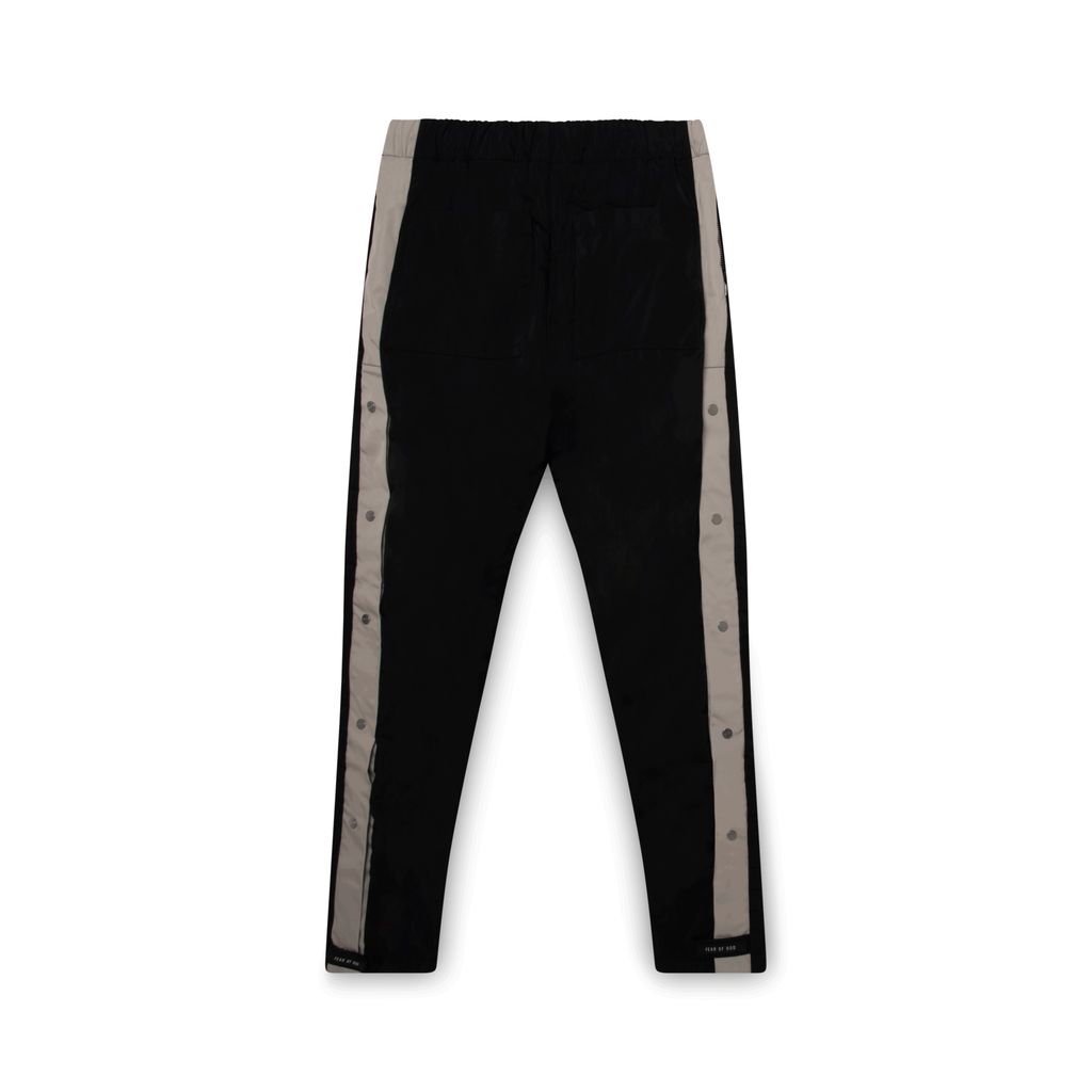 Fear Of God 6th Collection Baggy Tear Away Pants features elasticized drawstring waist, side zip pockets and back patch pockets, snap button closures at sides, and adjustable velcro tabs at the hem with rubberized logo detail. Made in USA. Dry clean only.