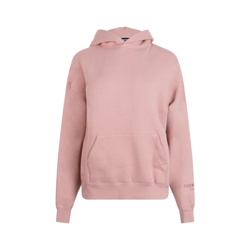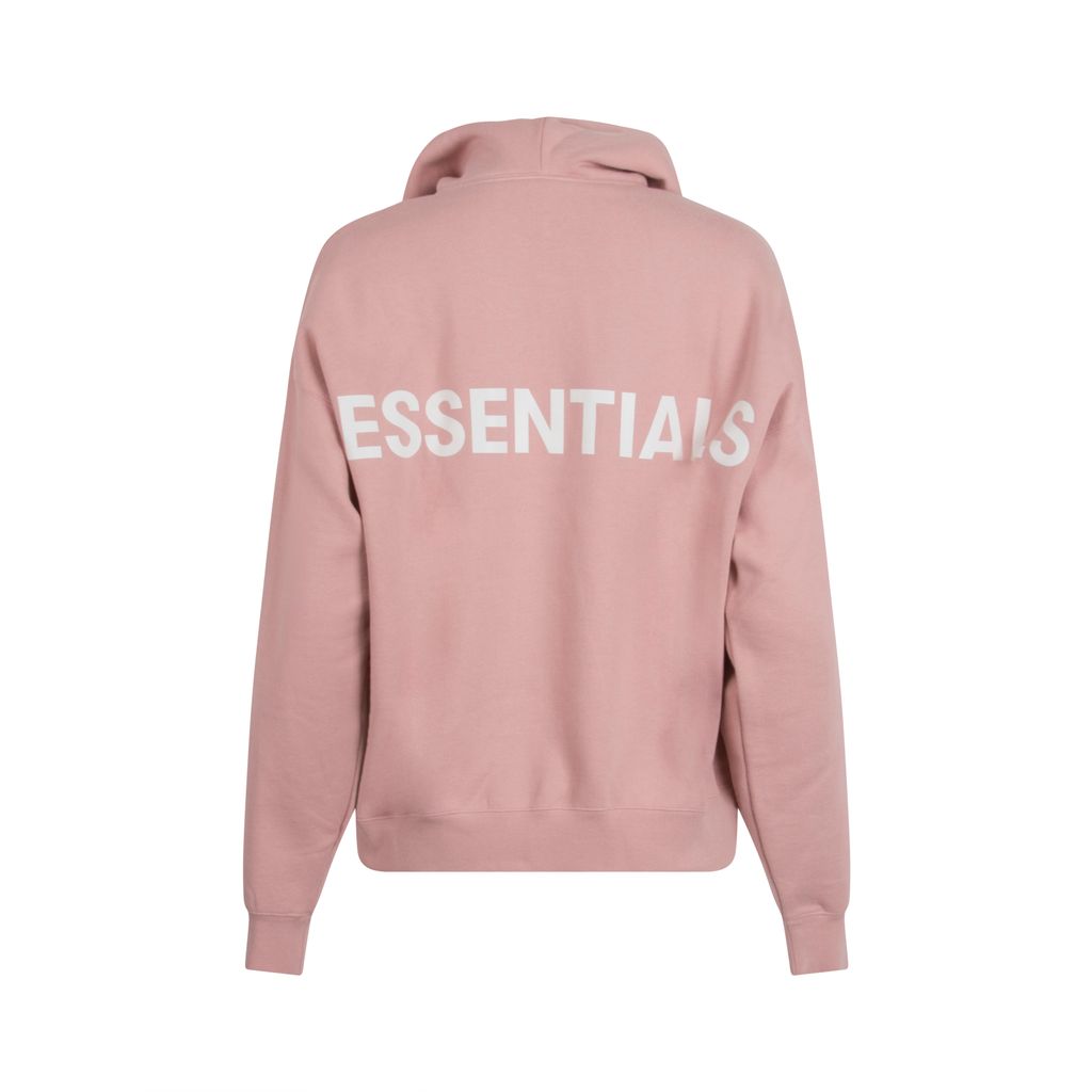 This heavyweight long sleeve cotton-blend fleece hoodie from Fear of God Essentials in grey features a rubber logo appliqué at hood, kangaroo pocket at waist, rib knit cuffs and hem. Tonal logo embroidered at left sleeve cuff and reflective logo printed at back. Brand new with tags attached.