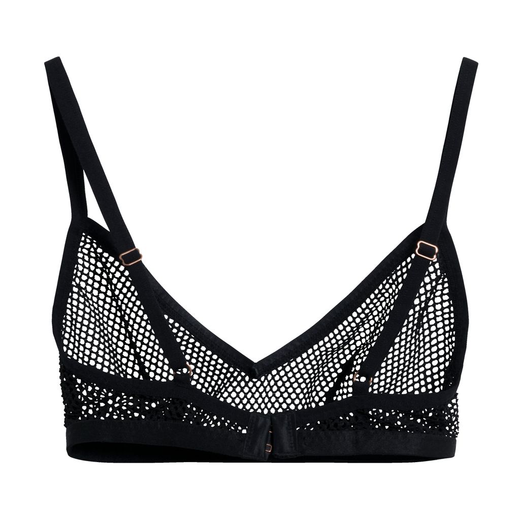 This sexy and trendy bralette from Rihanna's Fenty lingerie collection is crafted from comfy fishnet while the rose gold hardware adds a lux touch. A perfect base for a sheer white tank top or buttoned-down blouse.