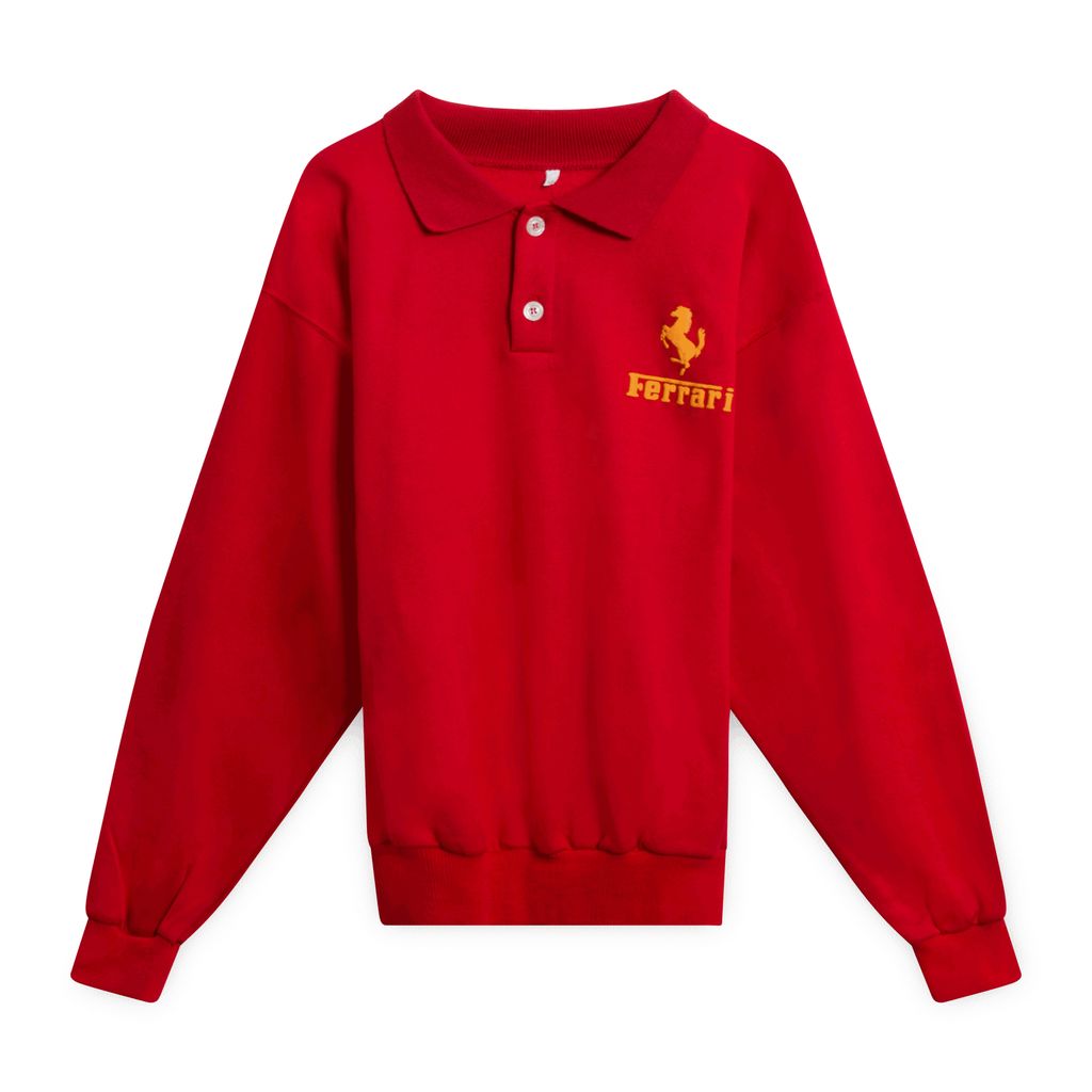 Features button-up with rib knit collar and Ferrari patch on chest