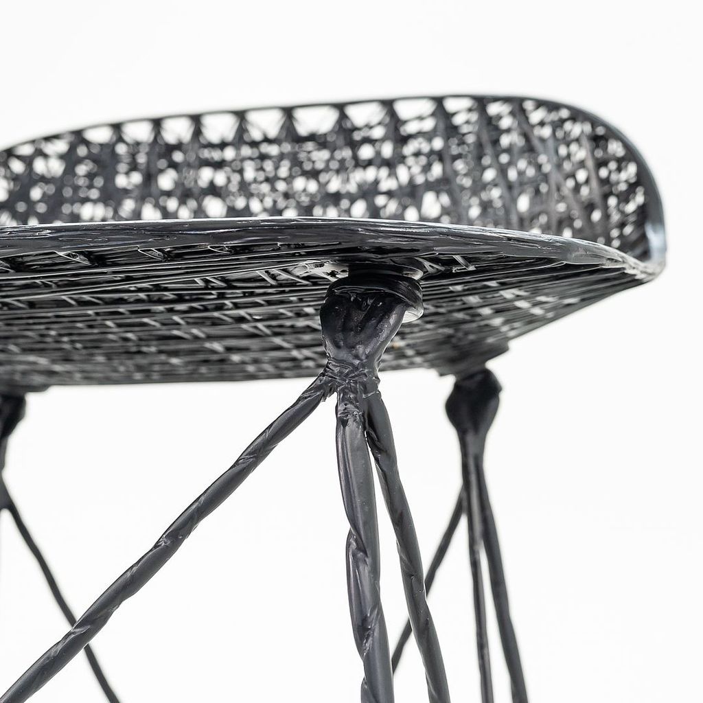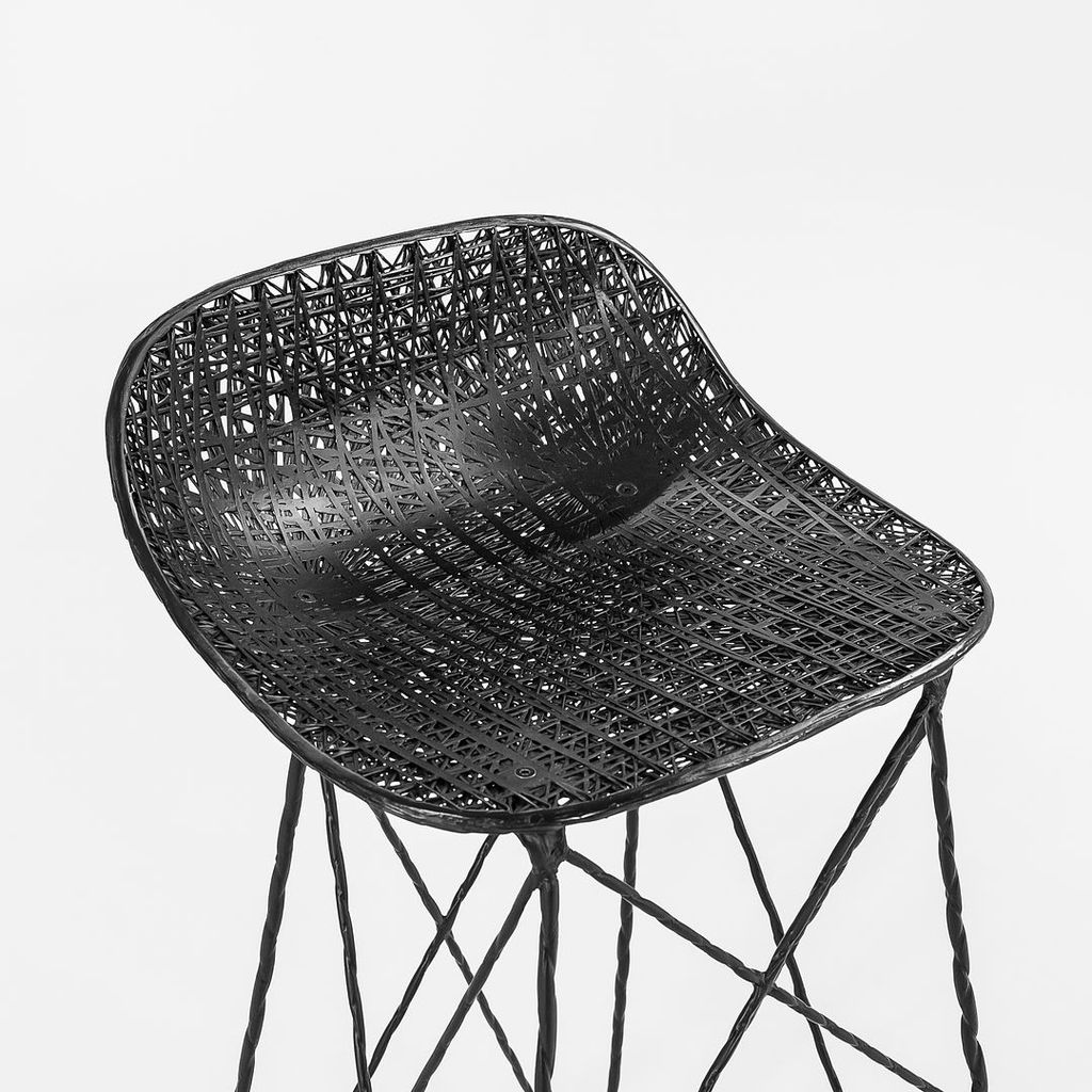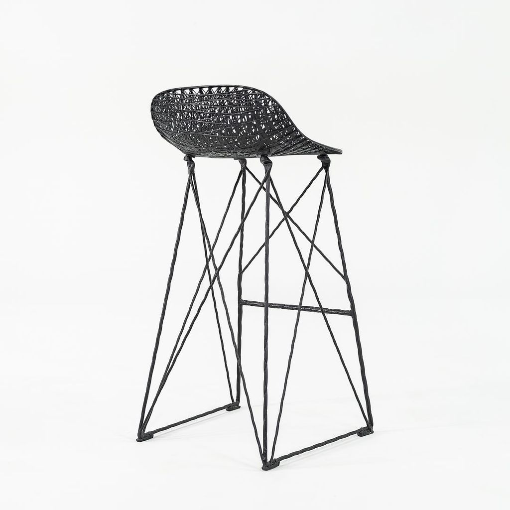 Listed for sale is a Carbon Bar Stool made of carbon fiber with epoxy resin. The stool was designed by Bertjan Pot and produced by Moooi in the Netherlands. It dates to circa 2022 and is guaranteed as authentic. Condition is excellent. See photos.