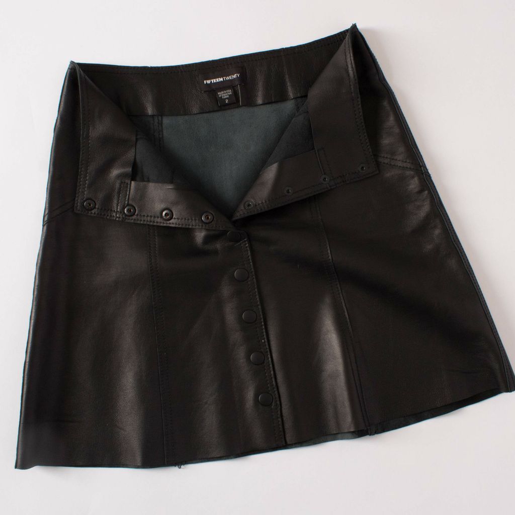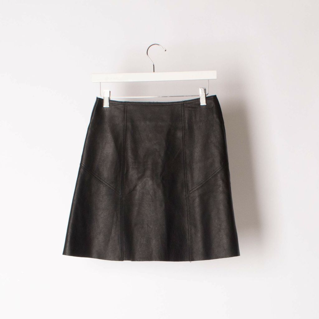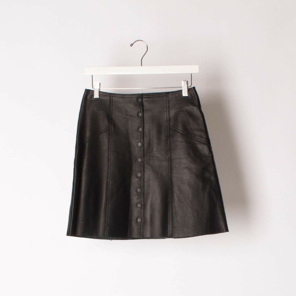 Lamb leather paneled A line skirt with front button up detailing. Dry clean only