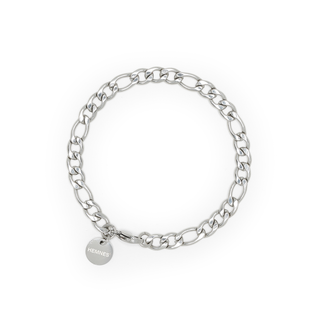 Handcrafted bracelet in stainless steel. Lobster closure. Logo engraved charm. Made in Los Angeles, CA.