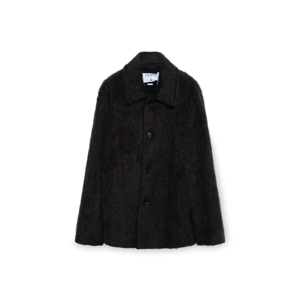 Filippa K Brown Alpaca Blend Coat features front button closure and 2 side pockets.