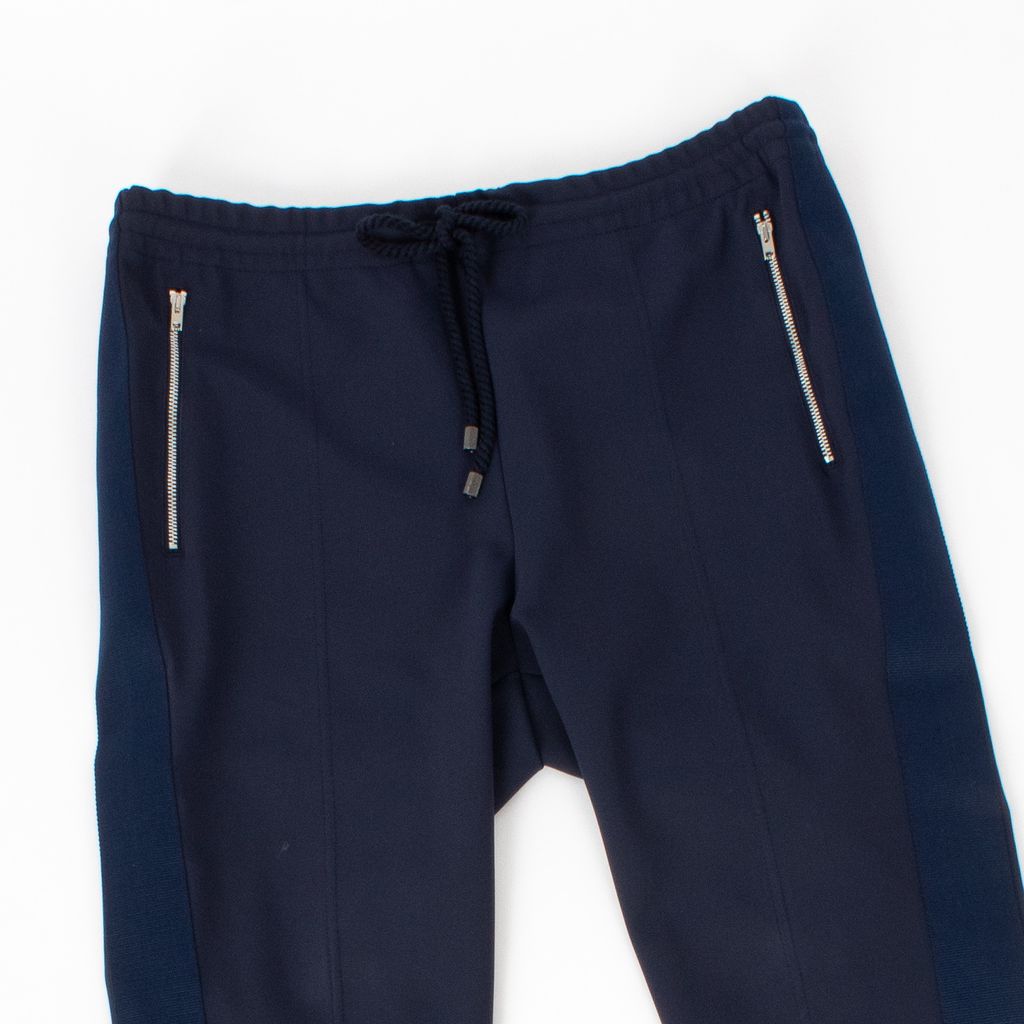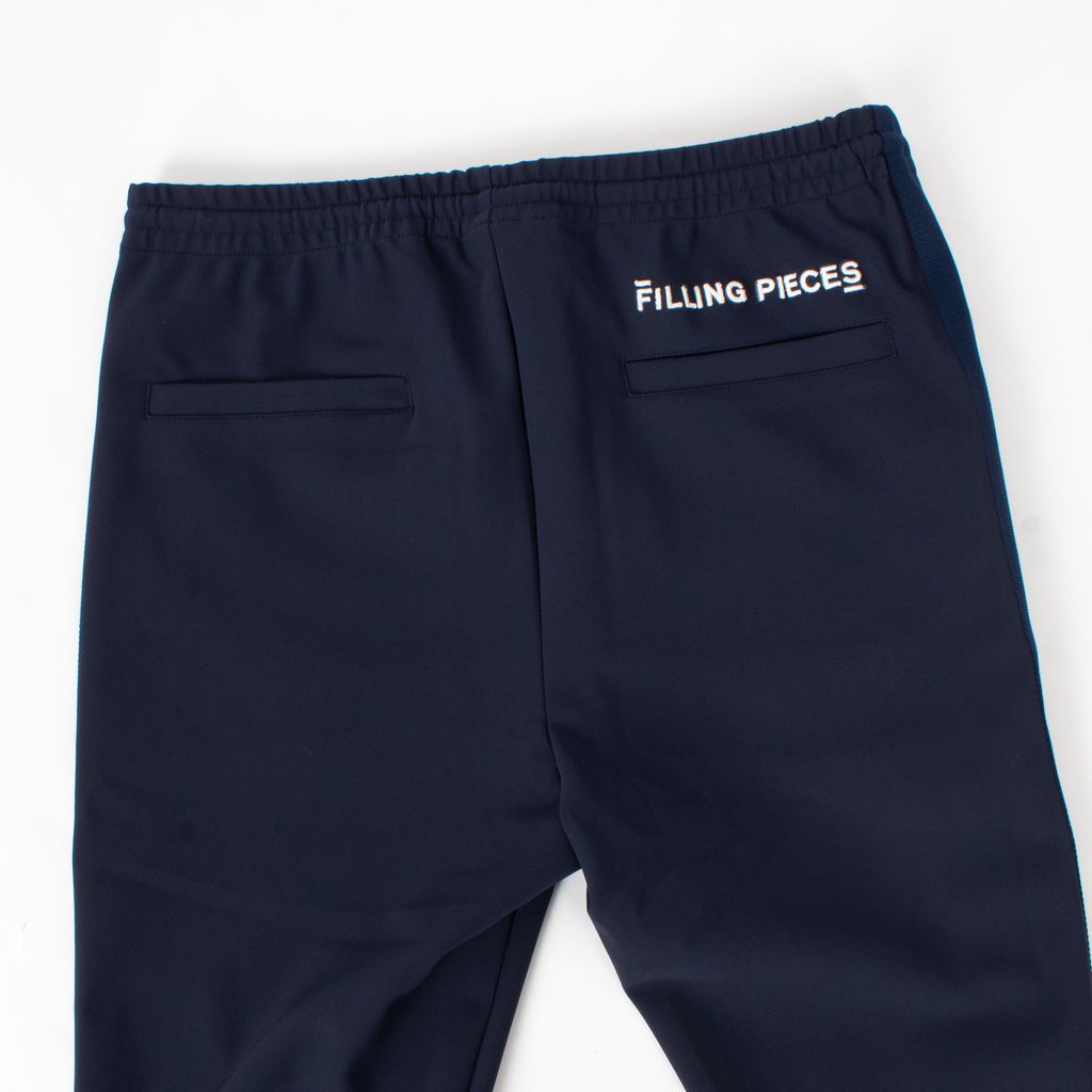 These track pants from Filling Pieces are a match made in high end athletic heaven. Features grosgrain ribbon trim down sides of legs, elastic waist with metal tipped pull ties, zip closure pockets, Filling Pieces logo embroidered above right back pocket, set of back pockets, and straight leg silhouette.