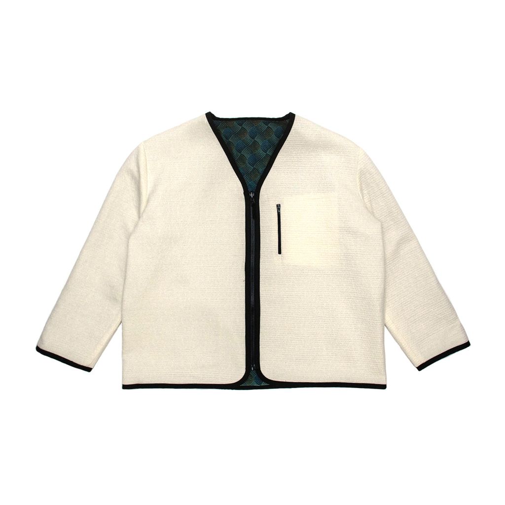 Reversible jacket inspired by vintage workwear and military garments. Assembled using vintage deadstock fabric. Feautures a unique welt pocket design, reversible zipper, chest zipper pocket and textured lining.