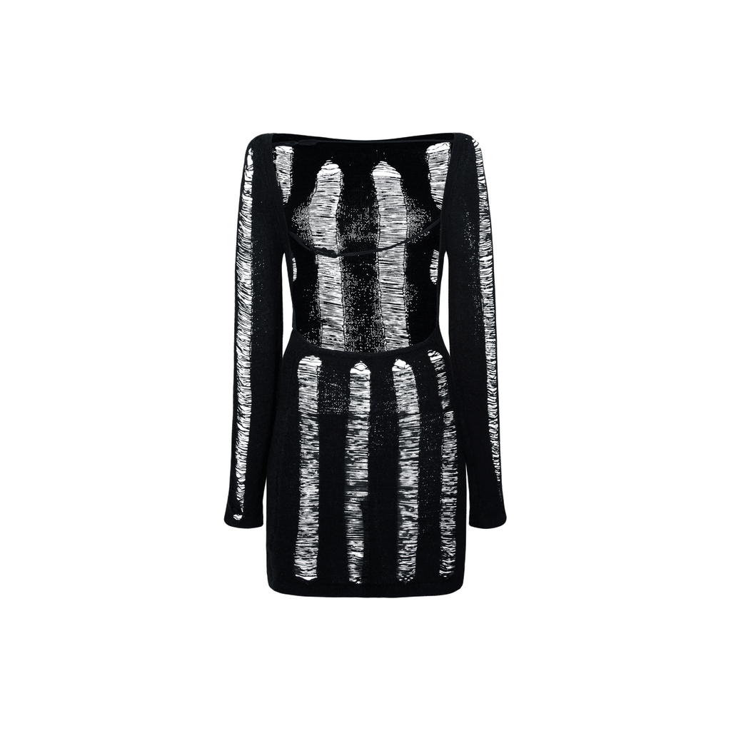 Finesse Mindy Black Mini Dress features open back, long sleeves, and cut out designs throughout.