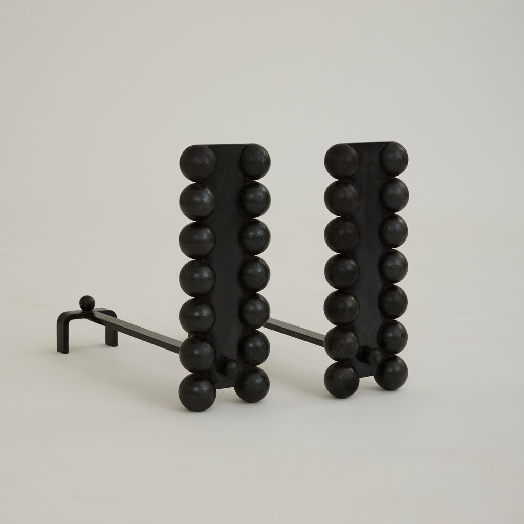 Inspired by a love for wood-burning fires and the timeless experience of tending to them and gathering fireside, we designed a series of objects to bring artful detail to the experience. We consider our hand-welded steel andirons—brackets used for bringing circulation to a fire and minimizing smoke—like jewelry for the fireplace. For best use and longevity, we recommend pairing with a grate.