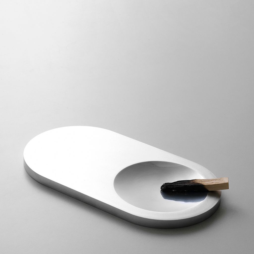 The solid aluminium object is made to be used as a burning tray but can also serve as a display platform for other small items.