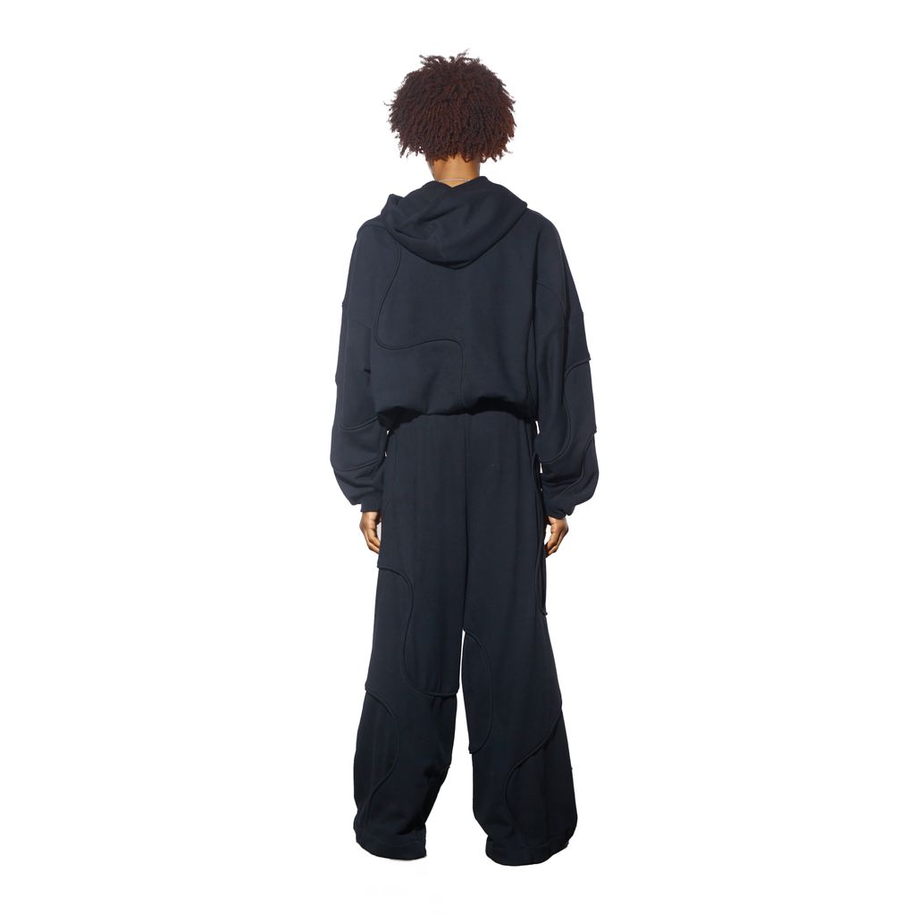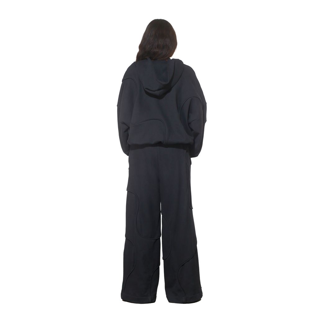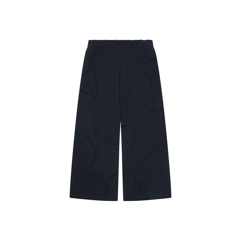 Fluidity Sweat Pants is a wide leg sweatpant that features swirled corded detail, high 3 in waistband, side pockets, and relaxed unisex fit.