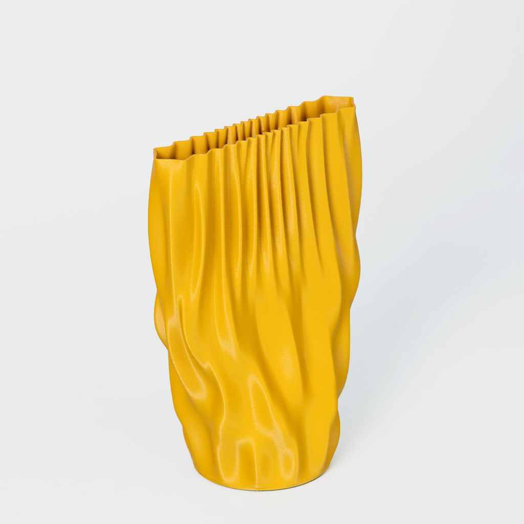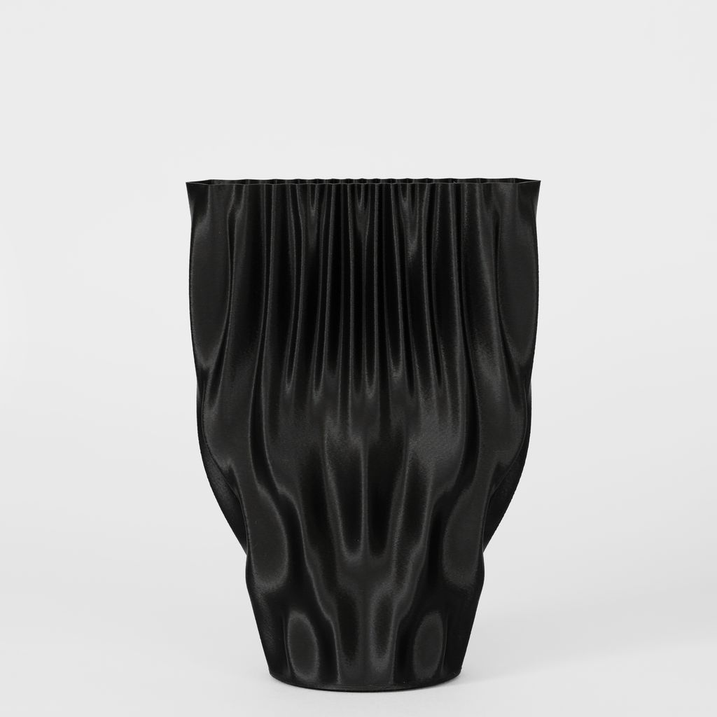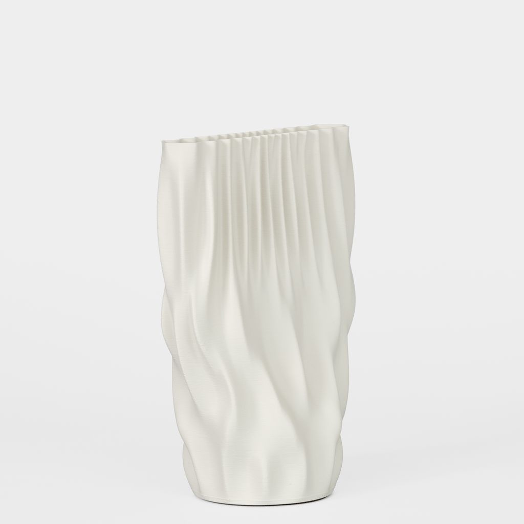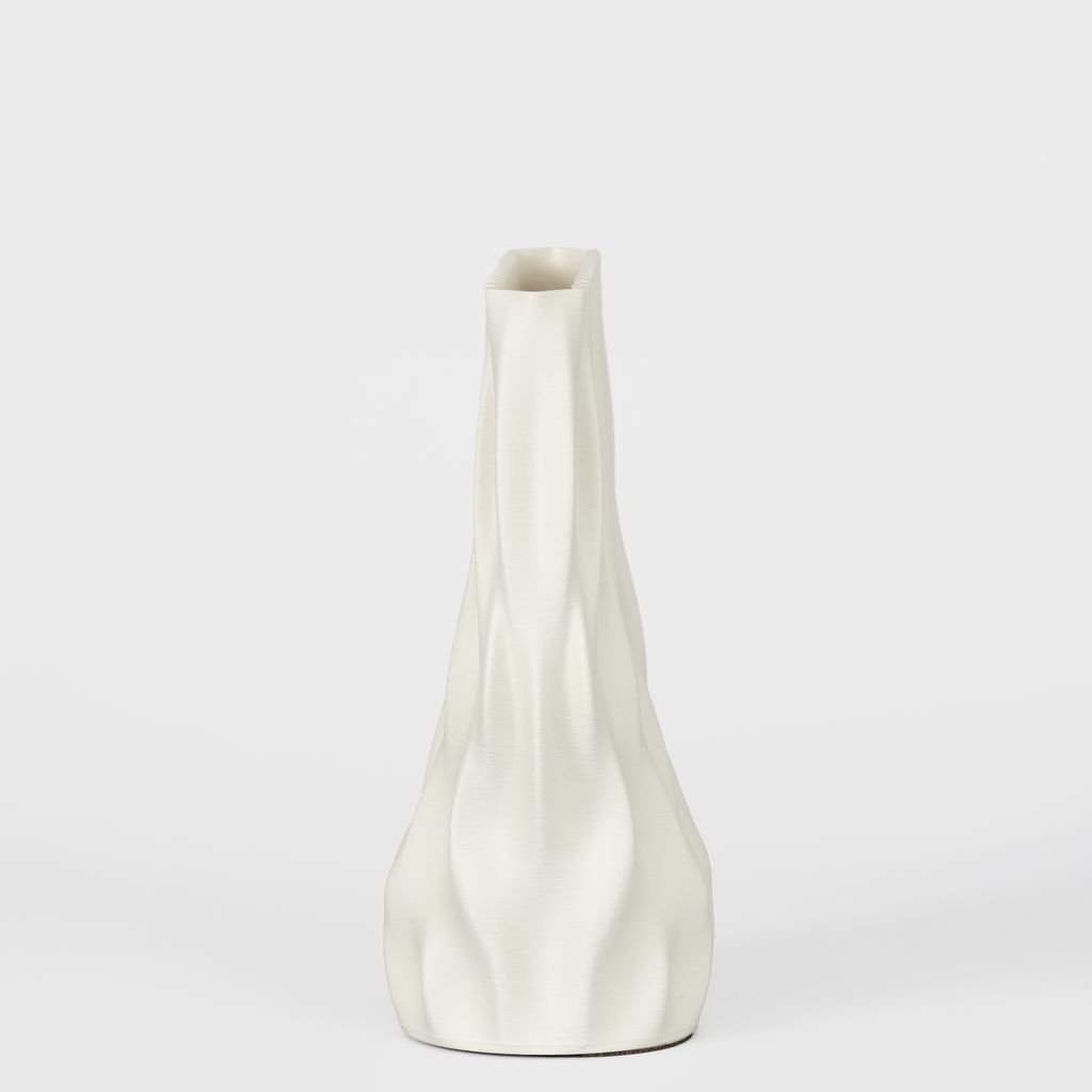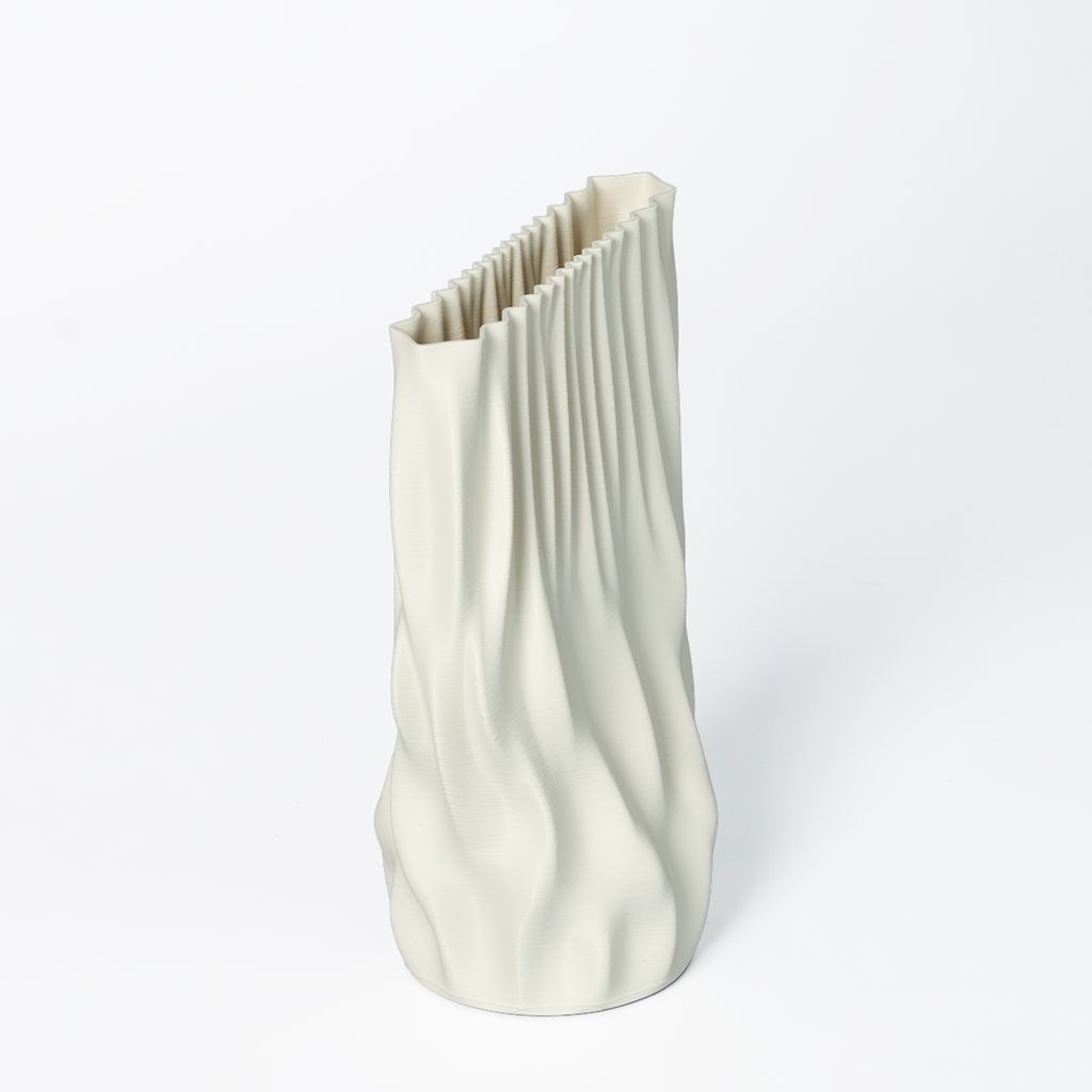 The Fmaj7 Vase features a taller, more fluid silhouette, with elongated vertical waves that create a sense of movement and lightness. Its form feels open and dynamic, allowing the surface geometry to shift subtly as it’s viewed from different angles.