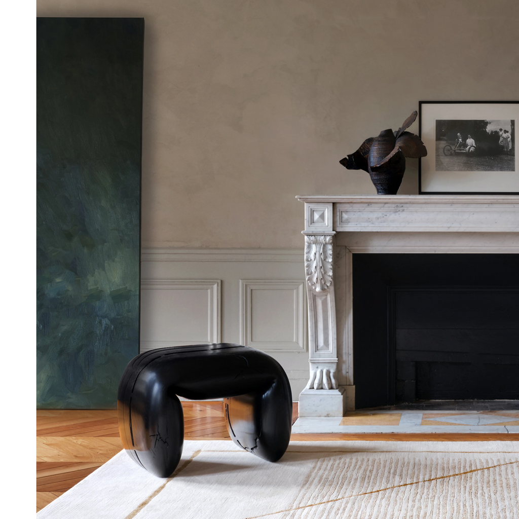 Hand crafted in reclaimed oak, burnt and ebonized with oil and wax finish.