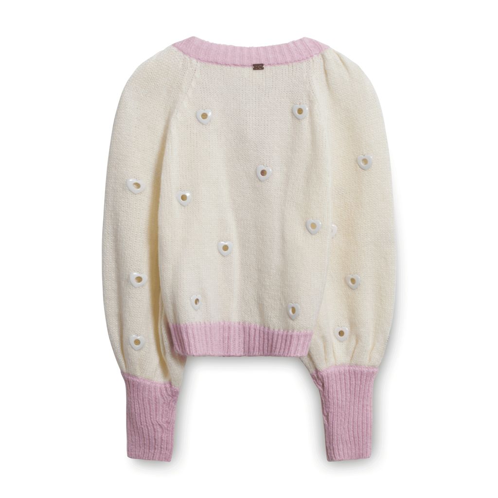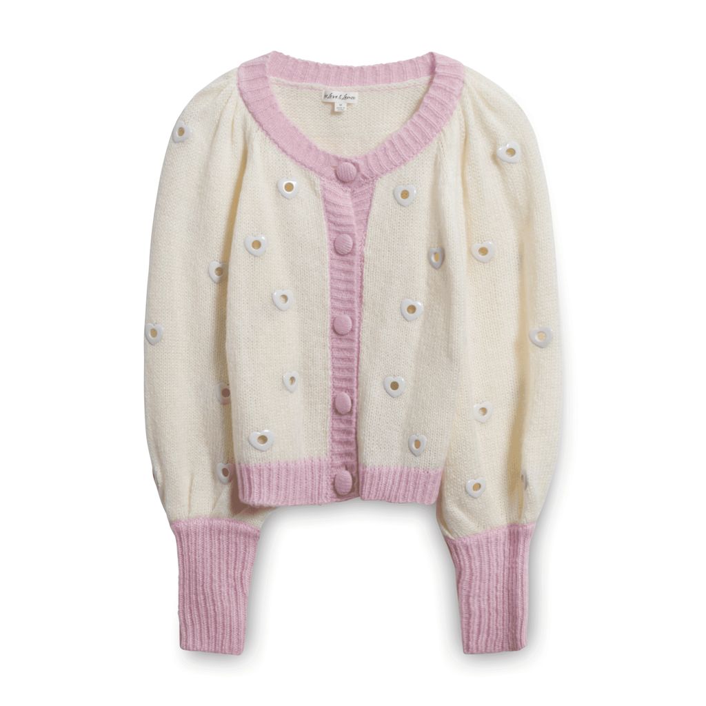 This For Love and Lemons knit cardigan is cut for a cropped fit and features front button closures with heart-shaped grommet accents throughout. Pre-owned. In excellent condition.