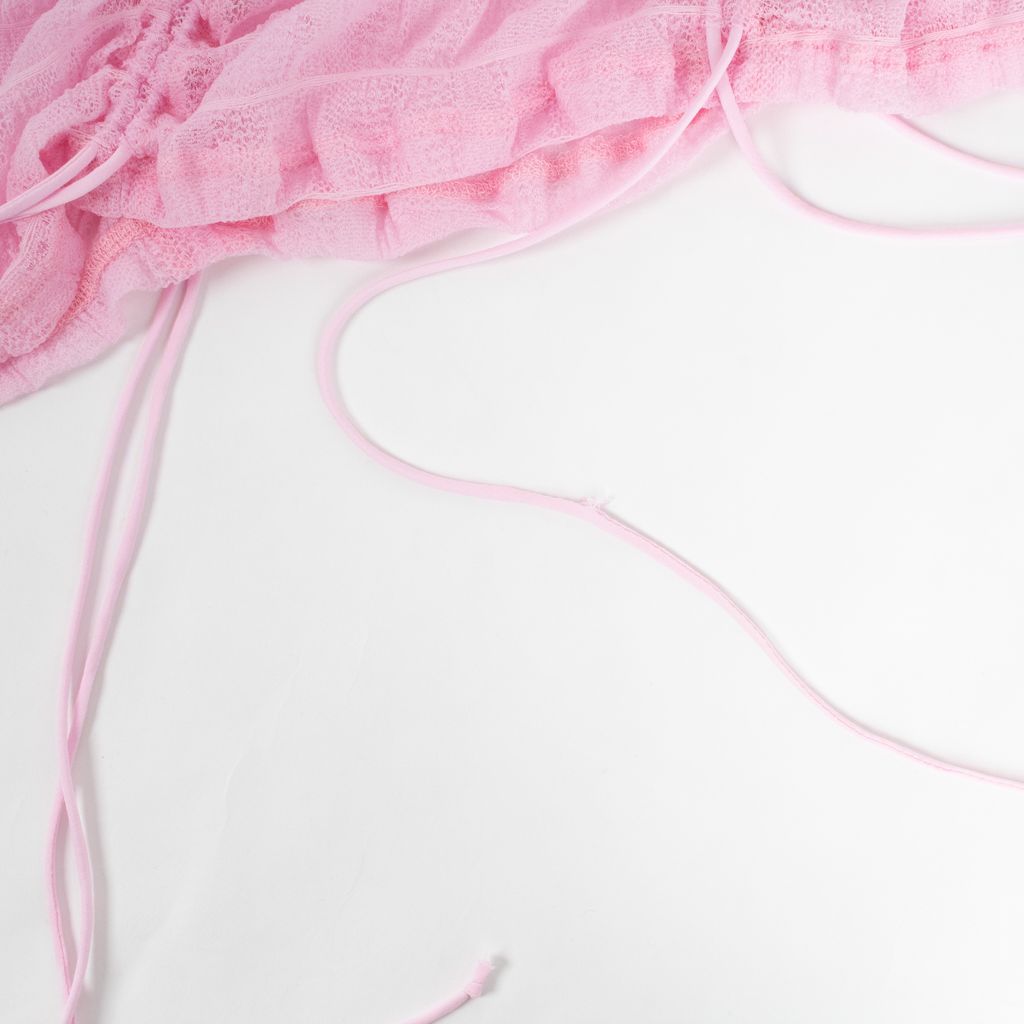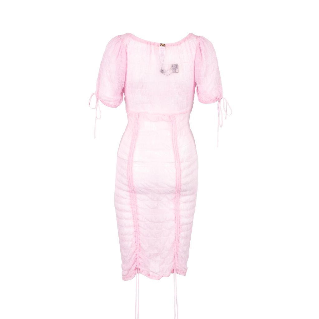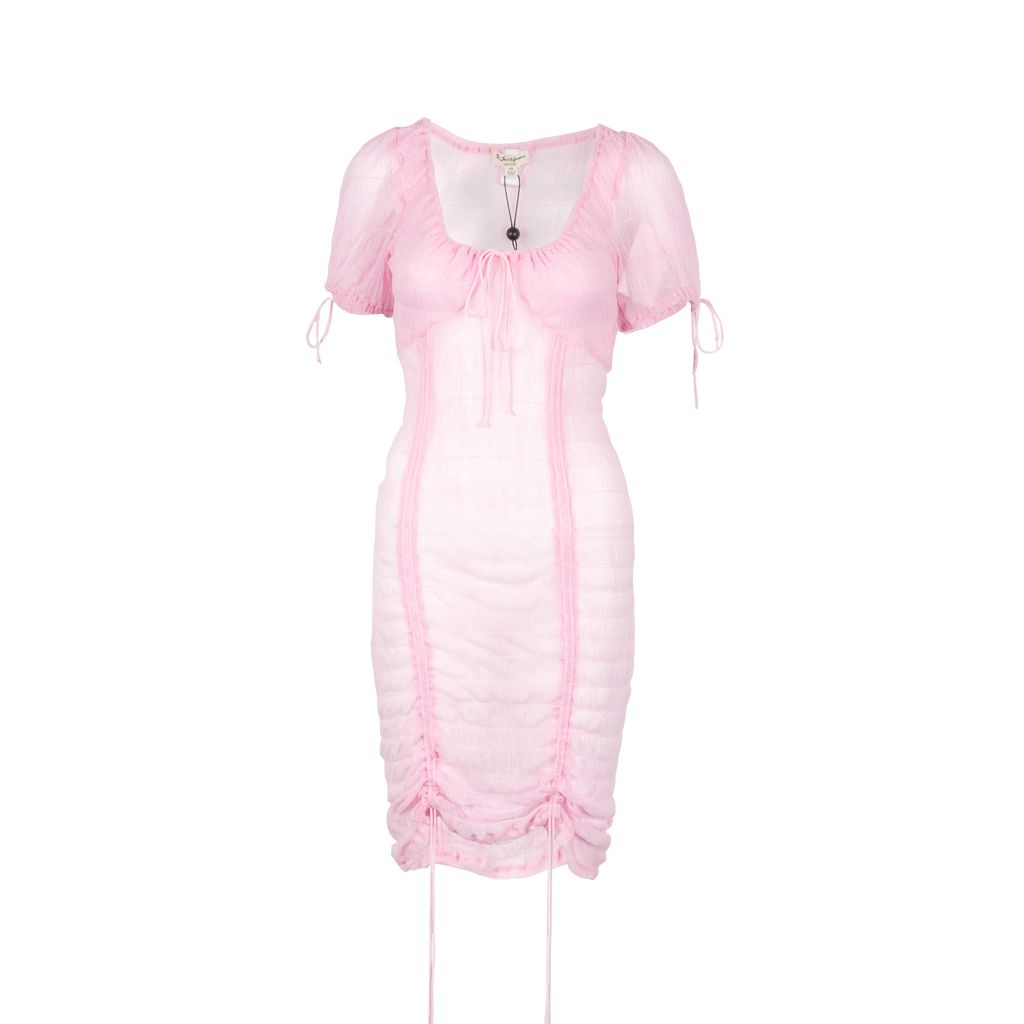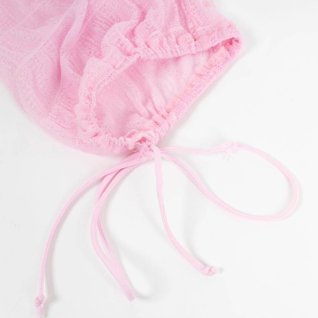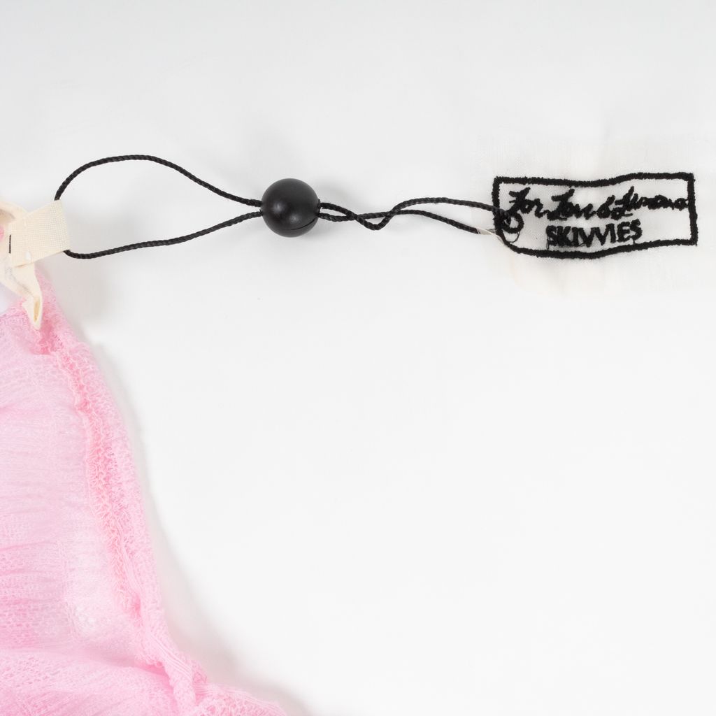 This dreamy nightgown from the For Love & Lemons underpinnings brand Skivvies keeps it cute in and out of the bedroom if you're feeling adventurous. Features semi-sheer open knit body, adjustable tie details at neck, sleeves, and bottom hem, cap style sleeves, seam detailing at bust, and minor signs of wear. Signs of wear include snagging and tears on pull tie seams as photographed.