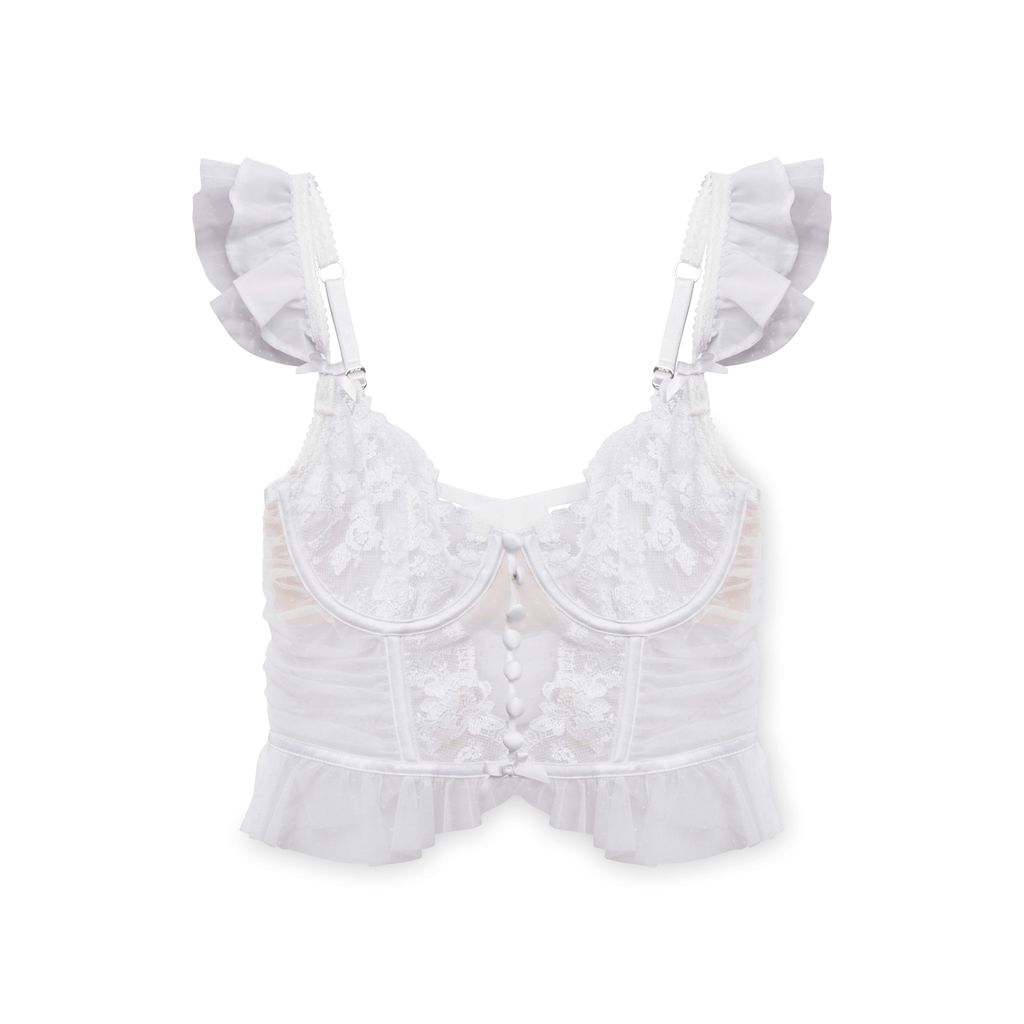 For Love & Lemons Mesh Tank Top Features ribbon shoulder detailing