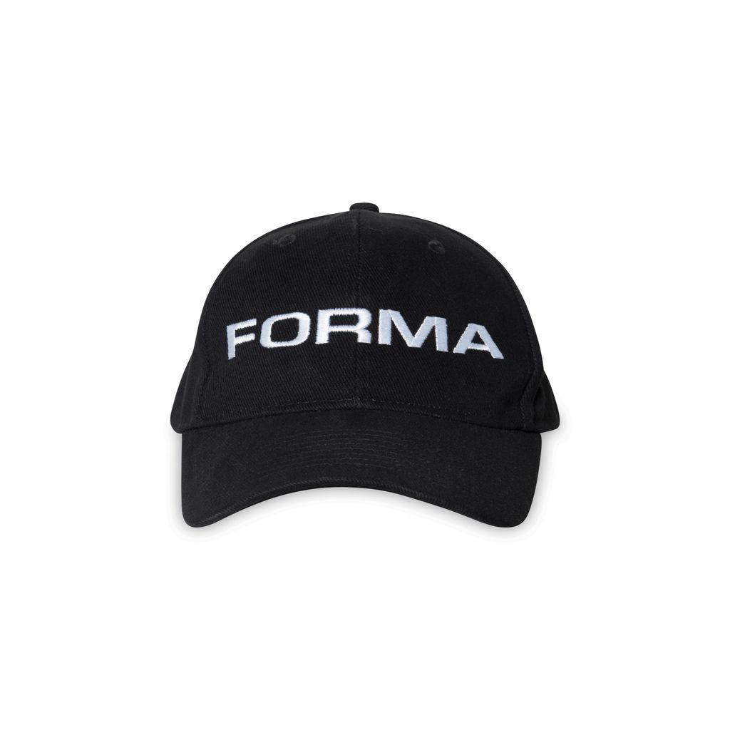 Forma black cap features embroidered Forma logo in white.