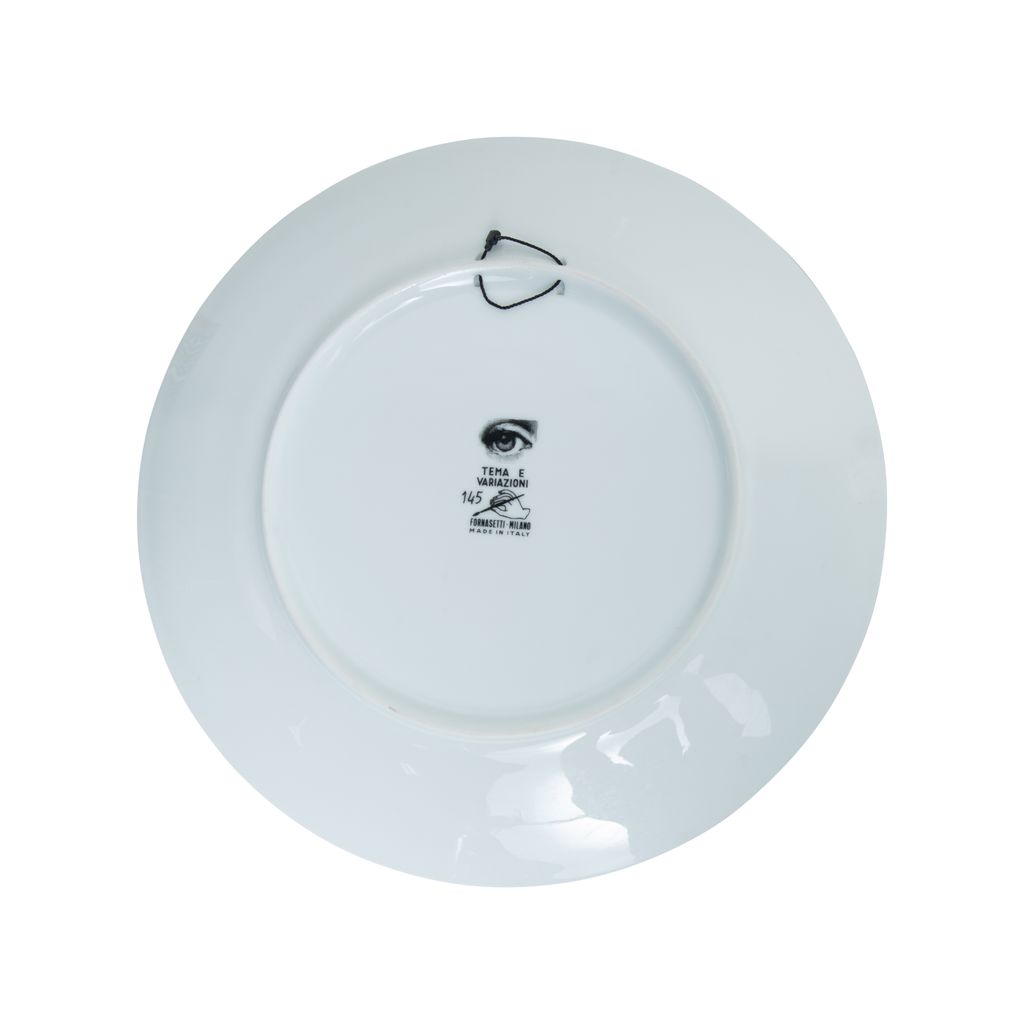 FORNASETTI Tema E Variazioni n. 145 wall plate features original design at front and wall hook at back. Item comes with original box.