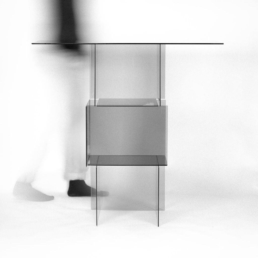 This collection seamlessly redefines the intersection of art and functionality. From dainty end tables securely holding belongings to seemingly delicate chairs providing reliable seating, “Fragile” reminds us that appearances can be misleading. The grey glass, though delicate in appearance, has been specially treated to ensure sturdiness and practicality in everyday use.