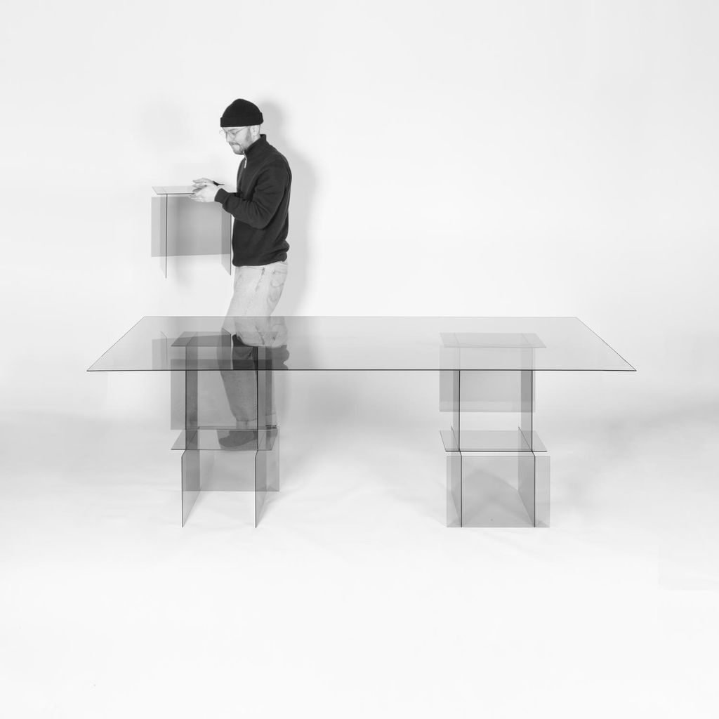 This collection seamlessly redefines the intersection of art and functionality. From dainty end tables securely holding belongings to seemingly delicate chairs providing reliable seating, “Fragile” reminds us that appearances can be misleading. The grey glass, though delicate in appearance, has been specially treated to ensure sturdiness and practicality in everyday use.
