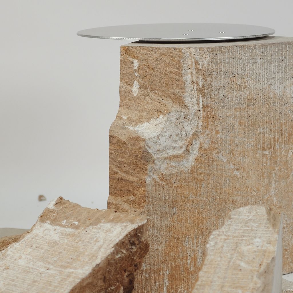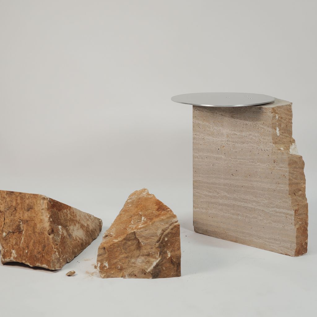 The fragments 01 series uses solid Winterset Limestone fabrication residues combined with pristine aluminum surfaces to create unique sculptural objects. The aluminum surface is mechanically attached accentuating its machine-made quality, create a dialogue between nature and the human-made. Suitable for indoor and outdoor. This piece is signed and numbered.