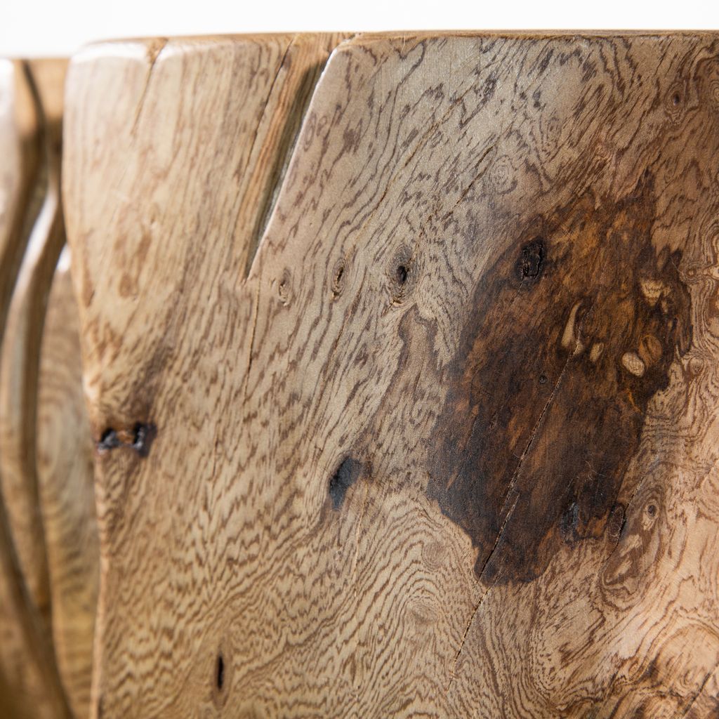 Each table in the Francisco Collection is hand carved from a solid trunk of Argentine Rosewood, then sanded and finished naturally to highlight its natural beauty. The top features a Live Edge and is tapered down in an elegant curve.