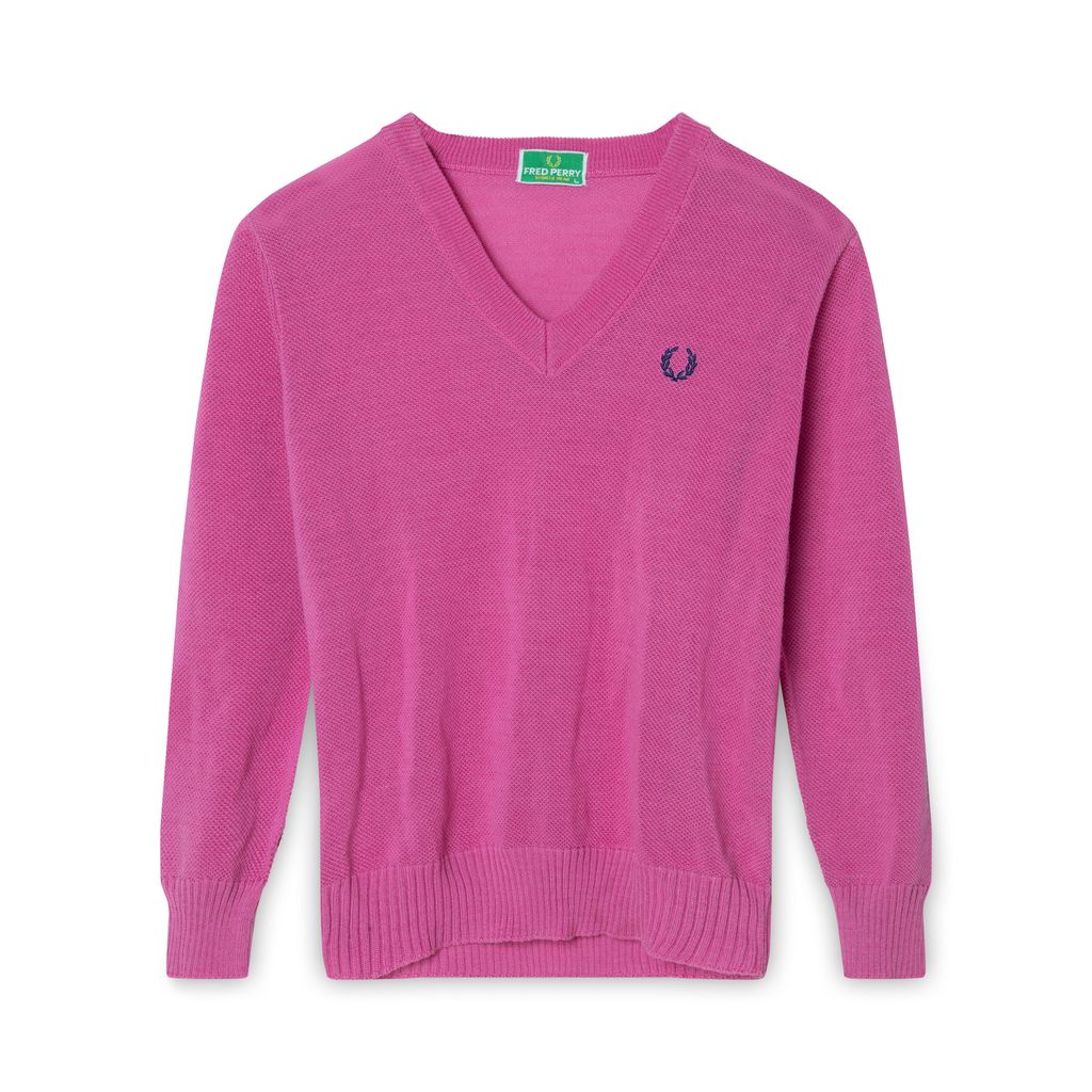 Fred Perry V-Neck features Fred Perry logo on the left, v-neck collar, and woven detail.