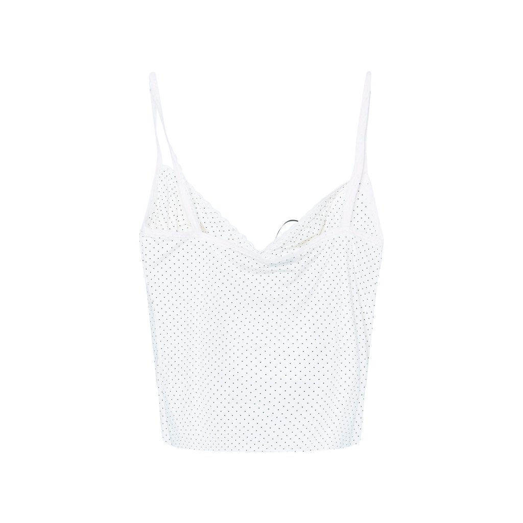 Freja Top features lace trim, delicate bow, and polka dot print.